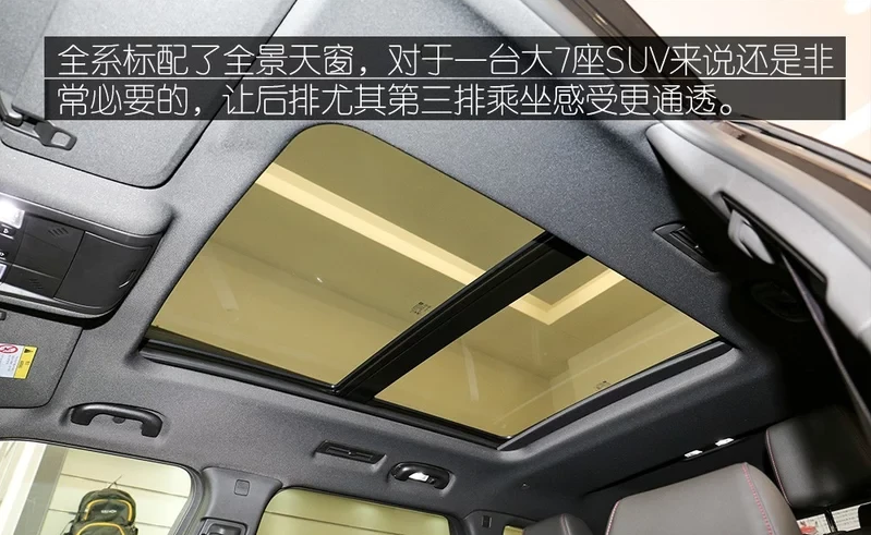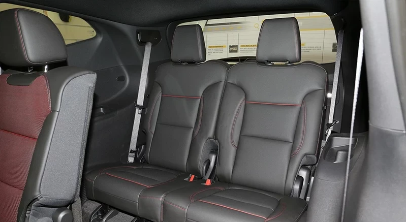 除了座椅的穿孔皮革和多向电动调节之外,红线的装饰还与内部的整体氛围一致。座椅舒适度适中,既柔软又硬,侧向支撑也没有强调包裹感,对于大一点的人来说,坐起来会很舒服。宽敞的7人座空间是满足日常家庭旅行需求的最大亮点。