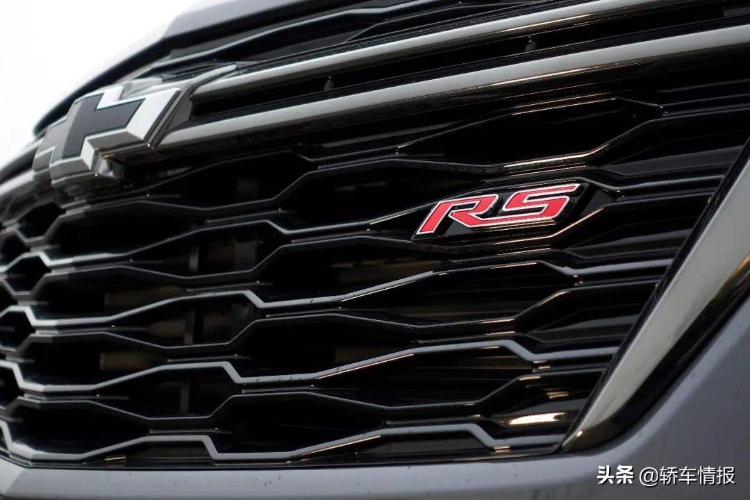 是啊,新款的雪佛兰探界者,从外观上就能一眼看出雪佛兰产品充满情绪的最新设计语言。纵使侧身线条没有变化,但新车在头、尾部分的“怒值”显然都被设计师点选增加了。横贯车头的镀铬饰条将狭长的LED头灯分割成了上下两部分,饰条向左右和上下延伸的末端都逐渐收敛为锋利的尖角,犹如刻在身上的凶狠刺青。在我驾驶的这台“RS”系列车型上,包括饰条和车标在内的全套暗黑风格配饰进一步提振了车辆的硬汉形象。经过重新设计的尾灯还映出了飞翼形状的光纹,“RS”系列车型在车尾露出的大口径四出排气更是拉满了气势(同时也制造出了更有弹性、声音更大的排气声响)。对了,还有轮毂,最大尺寸已经来到了19寸,轮胎规格也相应提高到235/50 R19(老款产品最大只能选择18寸轮毂和225宽度的轮胎)。