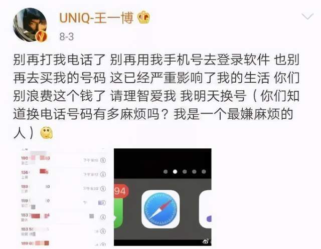 私生的惯常行为就是“给艺人添堵”,在《陈情令》中大火的王一博,还曾被售卖过电话号码,导致他亲自在微博呼吁“请理智爱我”~