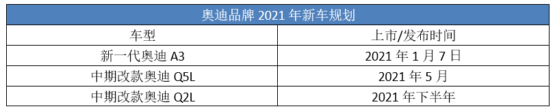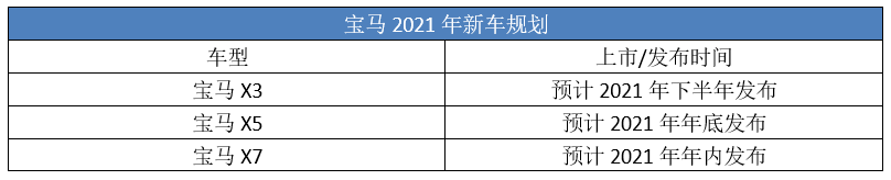 2020年已临近尾声,作为豪华车一线阵营的BBA,也即将分出高下。从数据看,今年1-11月,奥迪在华销量为59.54万辆,在豪华品牌中排名第一;奔驰和宝马则分别以56.84万辆和55.01万辆暂居二三位。 最终谁能笑到最后,答案很快就可以揭晓了。而接下来的2021年,新一轮的角逐又将开始那么它们都有哪些重磅产品要投放呢?下面就让我们来一睹为快吧。 需要注意的是,虽然奔驰EQ系列、宝马iX系列,奥迪国产e-tron等都在明年的新车计划中,但考虑到这些新能源产品市场热度并不高,所以下面疆哥盘点的仅涉及燃油车型。 一、奥迪 目前奥迪能暂居豪华品牌销量第一,最主要还是“以价换量”取得了成效。特别上半年,它在终端市场上的降价幅度一直居于三强之首。而2021年奥迪还将推出包括新一代奥迪A3、中期改款奥迪Q5L以及 Q2L。 1.新一代奥迪A3 上市时间:2021年1月7日 奥迪2021年首款开卖的车型将是新一代奥迪A3,包括三厢版和两厢版,新车此前公布的预售价为 21-25万元。作为入门级的奥迪车型,新A3有着全新的设计,以及更精致的内饰。 新一代奥迪A3L(三厢) 新一代奥迪A3 SPORTBACK(两厢)其中三厢版加长51mm,空间实用性突出,而两厢版原汁原味,可满足大家对操控的要求。动力方面,新车延用现款的1.4T发动机,最大马力150Ps,并匹配7速双离合变速箱。后期2.0T版本也会跟进,而海外主打的1.5T EA211 Evo发动机还需耐心等待。 2.中期改款奥迪Q5L 上市时间:2021年5月 Q5L作为奥迪SUV家族的主力车型,明年5月份将迎来中期改款。造型方面,新车基本延续了海外的设计,蜂窝状的格栅,搭配全新样式的大灯,整体看起来时尚动感。 中期改款奥迪Q5 现款奥迪Q5L尾部方面,新车提供两种不同的排气管样式,整体设计和现款区别不大,主要采用了全新的OLED尾灯,并且通过装饰条将两个尾灯相连。 内饰主要升级了原先那块8.3英寸的液晶屏,尺寸达到10.1英寸,可支持触控。此外,现款 MMI旋钮被换装成了储物格。动力方面,新车继续搭载2.0T高/低功率发动机,并匹配12V轻混系统。 新款奥迪Q5L内饰 现款奥迪Q5L内饰3.中期改款奥迪Q2L 上市时间:2021年下半年 作为奥迪SUV家族的入门车型,Q2L最近刚进行了年度改款,主要对配置进行了调整。而2明年下半年,中期改款的奥迪Q2L也将上市。 现款奥迪Q2L 现款奥迪Q2L从海外发布的Q2信息来看,新款车型造型发生了明显的调整,格栅和保险杠都变得更加运动,而升级后的Matrix LED矩阵式大灯,看起来也更加犀利。 新款奥迪Q2(海外) 新款奥迪Q2(海外)内饰和现款基本一致,最大的变化就是用新型皮革材料取代了Alcantara。动力方面,新款奥迪Q2L将继续使用1.4T+7速双离合变速箱的动力组合。 新款奥迪Q2内饰(海外)二、奔驰 2021年奔驰的燃油车产品投放主要集中在轿车领域,包括已经预热很久的新一代S级,还有“小号奔驰S级”之称的全新奔驰C级,也将于明年迎来换代。 1.新一代奔驰S级 上市时间:2021年一季度 作为奔驰轿车领域的头牌,新一代奔驰S级已经亮相有一段时间了,而新车上市后预计又将会引发舆论的热议。其中造型层面,全新样式的设计,整体变得没有以前那么商务范了。 而内饰层面,新一代奔驰S级取消引领潮流的“连屏”设计,并配备了新一代MBUX智能人机交互系统,相比于豪华感,这代车型似乎更突出的是其超强的科技感。 动力方面,奔驰S级共有三款发动机,五种动力,目前确定引入国内市场的只有3.0T汽油+48V混动以及S560e的插电混动。 2.新一代奔驰C级 发布时间:预计2021年第二季度 目前,新一代奔驰C级已经开展了路试,新车预计会在明年第二季度正式发布。从最新的曝光的渲染图来看,新C级整体采用了与奔驰S级车相似的设计风格。 新一代奔驰C级(渲染图) 新一代奔驰C级(渲染图)内饰上,新一代奔驰C级采用了悬浮式平板液晶仪表盘,并搭配竖直的中控屏,这套造型也和新S级类似。考虑到E级都还没跟上S级的设计,奔驰C级这种越级展现,高级感不言而喻。 新一代奔驰C级内饰(谍照)动力方面,新车将继续搭载1.5T以及2.0T发动机,部分车型还将配备48伏轻混系统,与它们匹配的是9AT变速箱。 三、宝马 2021年宝马的燃油新车投放也不少,主要集中在SUV领域,包括宝马X3、宝马X5以及宝马X7都将迎来中期改款。 1.中期改款宝马X3 发布时间:预计2021年下半年 作为宝马最畅销的SUV车型,X3的中期改款车型已经在路试了,计划在明年下半年正式发布。新车的前脸和尾部处于高度伪装状态,预计会在现款的基础上进行调整。 动力方面,参考现款车型,宝马X3将继续搭载2.0T高低功率发动机,同时有望引入48V轻混系统。传动系统匹配8AT变速箱,并标配四驱系统。 2.中期改款宝马X5 发布时间:预计2021年年底 作为中期改款车型,新款宝马X5将针对外观进行调整,从谍照可以看出其采用了全新的大灯。动力方面,宝马X5将继续搭载2.0T、3.0T发动机,同时有望引入48伏轻混系统,传动系统匹配8AT变速箱,并配备xDrive四驱系统。 值得一提的是,根据华晨宝马此前披露的计划书来看,宝马X5有望在2022年正式国产。如果属实,那么国产版宝马X5将是其中期改款车型。 3.中期改款宝马X7 发布时间:预计 2021年年内 去年4月份上市的宝马X7,现在来看它还是比较新的,但宝马还是觉得该给它改造了。从曝光的路试谍照可以看出,新X7的前脸细节似乎改动很大,大灯也有着很明显的调整。 而根据外媒绘制的渲染图来看,新款宝马X7将会迎来全新的前脸设