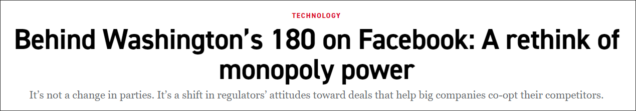 [文/观察者网 鞠峰]上周(2020年12月09日),美国联邦贸易委员会(FTC)和48个州对脸书(Facebook)发起反垄断诉讼,指控这家社交媒体巨头利用行业主导地位,通过早期收购等方式,造成市场上无法产生有力竞争者的局面。 2012年和2014年,脸书收购了图片社交软件Instagram(IG)和即时通信软件WhatsApp,如今,两款软件已融入Facebook生态,坐拥数十亿用户,构成横亘在外文互联网应用层的社交“帝国”之一。 然而,FTC可能通过永久禁令,让脸书强制拆分这两款应用。 对此,脸书驳斥道:恰恰是他们(FTC)在多年前,给我们的收购亮“绿灯”。 根据“政客”新闻网(Politico)12月13日报道称,在脸书多年前斥资200亿美元,收购那两款软件时,FTC没有提出任何异议。现在,它又要求将这两款软件拆分。“美国政府180度的转向,与党派无关,其背后是监督机构对于垄断力量的认知转变。” 据Politico报道,多年过去,反垄断机构的监管者对于科技、金融、医药行业“危险的”垄断实体持越来越警惕的态度,有反托拉斯(反垄断)专家将脸书的诉讼称为“法律革命”,并认为这场“史无前例的”诉讼可能给后续更多这样的挑战铺平道路。