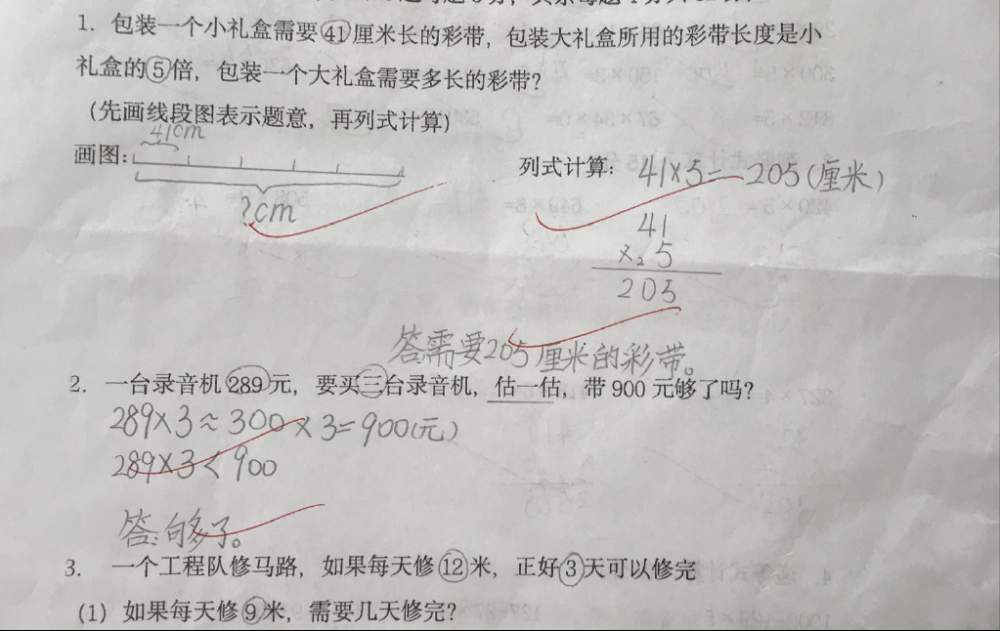适当刷题,举一反三 数学永远离不开做题,适当的练习是要保证的,不但有利于巩固知识,也可以帮助孩子保持住考试的感觉。 但是要注意,不要盲目刷题, 每张试卷要认真对待,严密审题,要做到书写工整全面,尤其是单元考点总结类的试卷,要弄清楚每道题考察的知识点。 刷题的时候,要让孩子养成读题划重点的习惯,低年级的孩子,用手指读题目,对于重点术语,比如多、少、同样多、增加、增加到、还剩等等,要重点圈记。画重点,一是可以帮助孩子将注意力集中到题目中,二是可以不漏细节,抓住重点。
