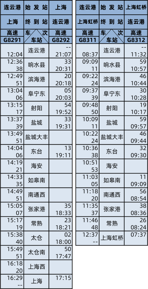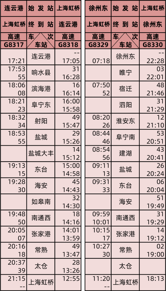 盐通高铁开通运营初期 (具体开行日期以车站公告为准)