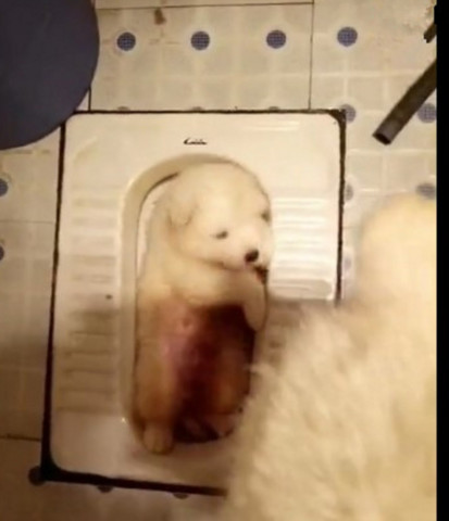 [宠宠杂谈] 萨摩耶把厕所当做床,窝在里面舒坦熟睡,铲屎官直呼该扔了 |