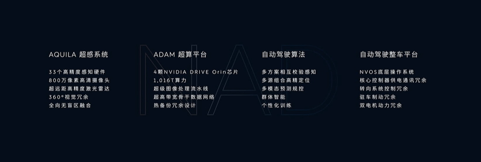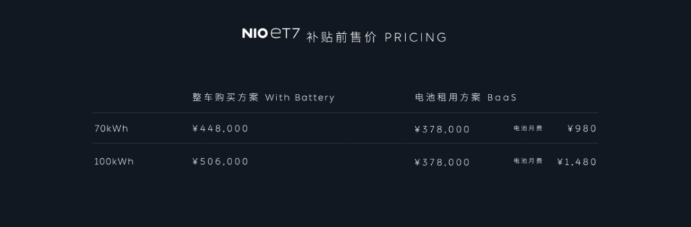 “2020年对于蔚来来说是劫后重生的一年”。 1月9日,带领蔚来跨过生死线、触底反弹的李斌登上了2020年NIO Day的舞台。 和一年前在深圳举办的NIO Day相比,李斌的状态看起来轻松不少。那时候蔚来汽车正身处困境,而现在蔚来正在走向辉煌。 李斌演讲是每年NIO Day最受瞩目的环节,在这个部分,他会发布蔚来新的产品和一些新的计划,是外界近距离了解蔚来发展的窗口。 在2020年的NIO Day上,第二代换电站、150度电池包、首款纯电动轿车ET7等纷纷出场。 在特斯拉开打价格战和疯狂下沉之际,蔚来大秀肌肉,超强算力、超强续航能力等都是本次NIO Day的亮点。坚持不降价、走高端路线的蔚来在曲线回击特斯拉? 01 更多的充电站+150度电池包,续航超1000KM 李斌在NIO Day上首先发布的是第二代换电站。 他提到,第二代换电站将拥有最多13块电池,日均服务频率312台次,支持自动泊入,车主无需下车,车内一键启动自动换电。 在2017年NIO Day上,李斌曾经夸下海口,宣称到2020年部署1100座换电站;然而现在来看,蔚来尚未实现这个目标。但李斌表示,“我们部署更多换电站的决心不会改变。今年我们将加快布局”。 目前,蔚来拥有100座超充站,792根超充桩,177座换电站,累计换电超过149万次。到2021年底,蔚来换电站总数达到500座。 除了充电站外,在BaaS方面,蔚来还发布了备受关注的150度电池包。电池包采用量产固态电池技术,实现50%的能量密度提升。 李斌介绍,150度电池包采用原位固化工艺的固液电解质,用无机预锂化工艺的硅碳负极,配合纳米级包覆工艺的超高镍正极,在能量密度跃升的同时保证了寿命,提高了充电效率。 蔚来汽车150度电池包工艺 “通过材料和工艺的创新,实现了360瓦时每公斤的超高能量密度。”他举例称,搭载150度电池包的2018款es8,续航可以超过730km,蔚来在售的三款车搭载150度电池包,续航将超过1000km,“这是一个标志性的里程碑。” 据悉,150度电池包正在加紧推进量产,预计将在2022年的第四季度开始交付。 02 首款轿车ET7秀肌肉,44.8万起售 在整场NIO Day上,最受关注的恐怕还是蔚来首款轿车ET7。 在过去,蔚来主打产品主要是电动SUV,而在轿车领域则是空白,今天推出的ET7则填补了这个空白。 李斌在发布会上重点展示了ET7的不少亮点。 比如,动力上,ET7采用前永磁后感应电机,前永磁电机峰值功率180kw,后感应电机峰值功率300千瓦,整车最大功率480千瓦650马力,峰值扭矩850牛·米,百公里加速时间3.9秒,百公里刹车距离33.5米。整车0.23风阻系数,70度电池包续航500公里,100瓦电池包续航700公里,搭载150度电池包后续航里程达到1000KM。 作为智能汽车,智能化能力不会缺席。全新12.8英寸中控屏,以及采用高通第三代数字座舱计算平台的蔚来第二代数字座舱。李斌表示,拥有最强的车载移动互联与通讯能力,集成了5G、WIFI6,以及V2X,在算力、图形处理、多媒体处理的能力全面提升。 在外观上,蔚来ET7采用了外观立体式的led大灯,则车位则采用了贯穿式心跳尾灯,新车轴距3060毫米,车长5098毫米,使用全球首款UWB数字钥匙,要实现厘米级的高精定位,真正实现无感进出,全系标配电吸门,靠近车辆时,门把手平行弹出。 蔚来汽车ET7产品图 内饰方面,ET7主打的是第二起居室的设计理念,关键词宝包括“宽敞舒适、精致、有温度”。内部采用1.9平米双层隔热玻璃穹顶,全系标配陨石镀铬工艺,另外全车14处采用了热带雨林再生藤木。内部还搭载了23个扬声器。 从定位来看,ET7和蔚来的SUV一致,主打高端市场。在售价上,77KWH电池包的ET7不含补贴预售价格44.8万起,而100KWH电池包不含补贴价格为50.6万元,如果采用租电池的方案,两款价格都为37.8万元,不同的是电池月费前者每月980元,后者每月1480元。 蔚来汽车ET7售价公布 03 自动驾驶PK特斯拉 在自动驾驶方面,蔚来也有新的动向。 在这次NIO Day上,李斌提到,蔚来已经建立了从地图定位到感知算法,从底层系统到控制策略的NAD全栈自动驾驶技术能力。 他着重介绍了蔚来在感知和计算能力方面的成果。在感知方面,全球首发800万像素的高清摄像头,这和特斯拉使用的120万像素摄像头相比,前者分辨率提高了六倍。 由于800万像素的自动驾驶摄像头可以检测到六百八十多米外的车辆,两百六十多米外的锥筒和二百二十多米外的行人,能够探测到的最远距离是120万像素的三倍。 此外,在感知方面,蔚来和Innovusion合作开发的激光雷达,拥有120度的超广视角,等效300线的高分辨率,500m的最远探测距离。 李斌称,该激光雷达采用波长1550纳米激光避开了人眼敏感的900纳米波长,在性能提升的同时能更好照顾他人安全。 和特斯拉对于激光雷达不屑一顾的态度不同,李斌认为,激光雷达对提高自动驾驶的安全性非常重要尤其是在夜间高速行驶等情况下不可或缺。 结合800万高清摄像头以及33个高精度感知硬件、超远距离超远距高精度的激光雷达,形成了AQUILA蔚来超感系统。李斌表示,800万像素高清摄像头加上超远距高精度的激光雷达,大幅提升了nad的感知能力,“让自动驾驶的安全性提升了两个等级。” 在AQUILA蔚来超感系统每秒8G的数据处理压力下,蔚来还打造了自号称迄今最强大的量产移动计算平台——ADAM蔚来超算平台。该平台搭载了4颗英伟达Orin芯片,拥有48个CPU内核,256个矩阵运算单元,8096个浮点运算单元,共拥有680亿个晶体管,算力为1016T,是特斯拉FSD平台算力的7倍。 蔚来汽车在自动