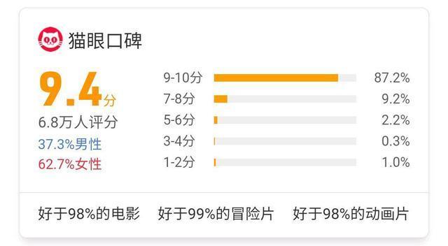 12月25日,皮克斯制作的治愈系动画片《心灵奇旅》在中国上映。尽管这部电影的制作团队,曾经做出过《头脑特工队》,以及《寻梦环游记》这样的佳作,但是它并未因此获得影院经理们更多的排片。 上映首日,《心灵奇旅》作为圣诞档唯一的动画片,却只有可怜的2.7%的排片。 影院经理们更看好的是几部国产电影,刘德华、刘青云的《拆弹专家2》获得了37.2%的高排片,赵又廷、邓伦的《晴雅集》获得了32.2%的排片,杨颖、李鸿其的《明天你是否依然爱我》获得了12%的排片,彭于晏、辛芷蕾的《紧急救援》有10%的排片。 不过,《心灵奇旅》上映一天,口碑就爆了而且是各大电影评分平台,都获得了较高的评分。第二天,《心灵奇旅》的排片量就翻倍了,到了12月30日,排片提升到了9.9%。 12月31日,《送我一朵小红花》、《温暖的抱抱》以及《崖上的波妞》同天上映,分别占据了24.7%,28.9%和8.5%的排片占比。《心灵奇旅》排片受影响,下降到4.7%。 原本以为,同为治愈系动画片的《崖上的波妞》会抢占《心灵奇旅》的排片和票房份额,然而这部日本动画,上映第二天的排片占比就骤降到2.2%,之后一周就再也没有超过过2.5%。 1月份,汪海林和于正网上开撕,于正得意忘形,口无遮拦。结果,国内111位编剧联名抵制于正和郭敬明,事件升级,于正和郭敬明迫于压力道歉。 疑似受此影响,于正退出综艺《我就是演员3》,1月5日,郭敬明执导的电影《晴雅集》正式被强制下线,仅仅上映了11天时间。《晴雅集》所占据的排片,分摊给了其他电影。 《心灵奇旅》靠着电影质量,口碑的传播,再次实现逆袭。虽然在票房上,排片占比方面,《心灵奇旅》不占优势,但是该片的上座率,却取得了多日的日冠军。 1月11日,《心灵奇旅》再次获得上座率日冠,累计票房达到了2.39亿,观影人次超过628.5万。 《心灵奇旅》的优势,在于它是面向全体观众的。虽然是一部动画片,但并不低智,而是充满了对生命的探讨。人为什么活着? 主人公乔伊是一个普通人,日子过得浑浑噩噩。人到中年,一事无成。他一直有一个梦想,就是想获得一次音乐演唱会的资格。除此之外,他就再没有什么开心的事。 但是,他忘乎所以的走路,在掉进下水道后,不得不面临生命的再次选择。电影给灵魂安排了四个空间。第一个就是生活的地球,第二个是生之彼岸,第三是生之来处,第四是生死之间。 灵魂可以选择,到哪里去。 乔伊一心想回到地球,因为他还有没完成的梦想。另一位主角灵魂22的出现,改变着影响着乔伊。22无欲无求,对生命不报有希望。它是个充满负面情绪的伙伴,却让乔伊重新审视了生命的意义。 他意识到,活着,本身就是一件有意义的事。只要活着,身边再无聊琐碎的事,也依然有意义。享受活在当下,可能是本片的意义所在。 正是影片对【我为什么活着】的探索,撩动了很多观众的心弦。在很多观众眼里,那个一事无成的乔伊,对生活无望的22,都是自己。所以,共情的产生,让观众认可了这部动画。 电影中的那些台词,也是一头就扎进了观众心里,让人舒畅无比。“火花不是人生目标,当你想要生活的那一刻,火花就已经被点燃。” 对于《心灵奇旅》来说,无疑又成为了口碑逆袭排片的经典案例。这样的逆袭,会让人觉得,只要是好电影,观众会给出好的回应。 $ C9 ~7 y% t. _1 {! d5 r* {