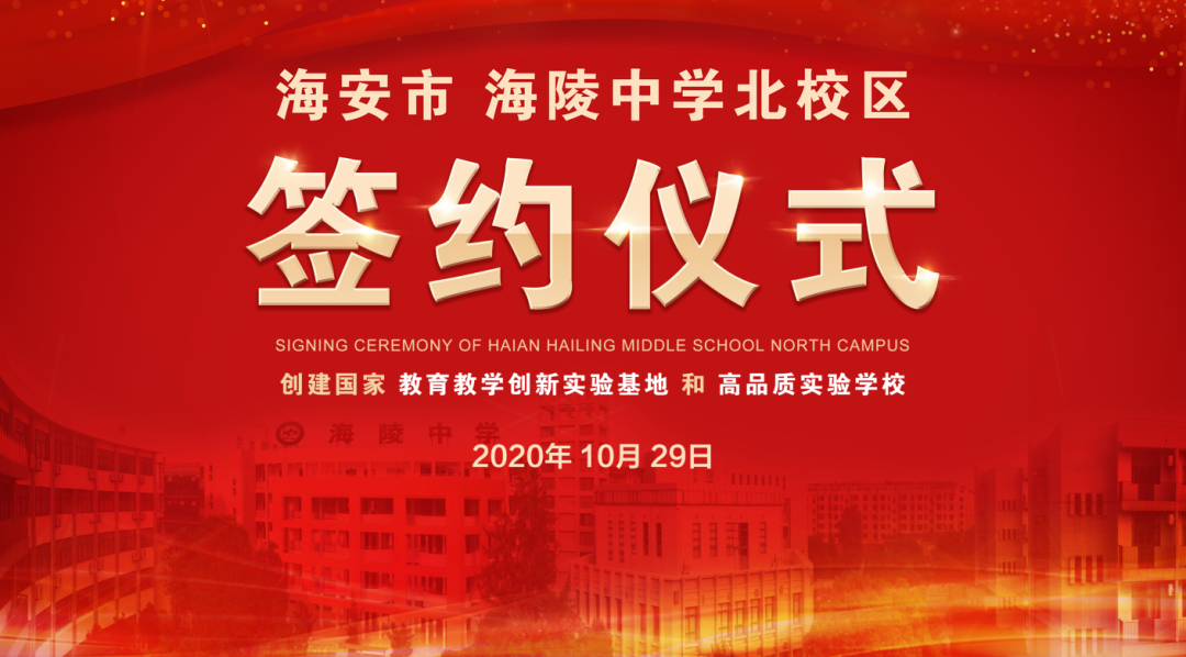 10月29日,在海安市教育体育局见证下,海安市海陵中学教育集团与江苏瑞海投资控股集团有限公司共同签署合作协议,这标志着海安市海陵中学北校区正式入驻海安新通扬河生态区!