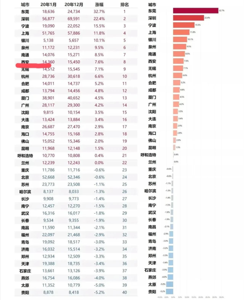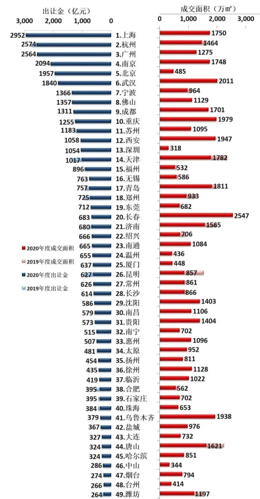 目前全国各省都已经公布了2020年的经济数据,2020年虽然受到疫情的影响,但是全国绝大部分省份经济仍然保持正增长,其中全国GDP总量达到1015986亿元,同比增长2.3%。 不过跟过去几十年高速增长相比,2020年大部分省份的GDP增速相对来说都是比较缓慢的,除了西藏保持7.8%的增速之外,全国其他省份增速均低于4.5%。 但跟经济增速放缓相比,2020年全国各省的房地产市场却表现出了截然不同的两种结果,有的地方相当火热,而有的地方则降入了冰点当中。 下面我们就分别从土地市场、商品房交易市场以及房地产投资市场来看下各地的实际表现。 第一、主要城市土地出让金 根据相关数据统计,2020年全国300个主要城市土地出让金达到59827亿元,同比增长16%,这里面有部分城市的土地出让金跟2019年相比同比涨幅是非常大的。 比如2019年上海的土地出让金是1992亿元,而2020年土地出让金达到2952亿元,同比增长达到48.19%;2019年广州土地出让金1861亿元,2020年土地出让金2560亿元,同比增长37.78%;2019年西安土地出让金712亿元,2020年土地出让金1058亿元,同比增长48.6%;2019年深圳土地出让金680亿, 2020年土地出让金1054亿,同比增长55%;2019年佛山土地出让金775亿元,2020年土地出让金1357亿元,同比增长75%等等。 可以明显的看出,2020年一线城市以及新一线城市的土地增长速度是比较快的。 但跟一线城市相比,有部分城市的土地市场表现就没有那么火热了,比如2020年苏州土地出让金只有1183亿元,同比下降36.05%,天津同比下降25.06%,福州同比下降了27.15%,青岛同比下降26.72%,郑州同比下降43.75%,温州同比下降35.53%,昆明同比下降37.98%,合肥同比下降56.35%等等。 第二、主要城市房价表现 2020年很多地方的房价仍然继续上涨,个别城市房价涨幅甚至达到10%以上。 整个2020年全国100座主要城市新建商品住宅成交均价同比涨幅达到10.8%,但具体到不同的城市上,他们涨幅差距是比较大的,比如2020年房价涨幅排名前10的城市分别是东莞32.7%,深圳22.4%,宁波15.5%,上海11.8%,银川10.1%,泉州9.5%,南通8.5%,西安7.6%,无锡7.1%,杭州6.6%。 但与此同时我们看到有部分城市的房价实际上是处于下跌的,其中贵阳同比下跌5.2%,太原同比下跌5%,燕郊同比下跌40%,石家庄同比下跌3.9%,天津同比下跌3.4%。 不过这些城市的下跌幅度相比头部城市上涨的幅度来说,其实算是比较小的。 第三、房产销售面积及销售额 2020年全国31个省份商品房销售面积同比增长23个,同比下降8个,其中商品房销售面积涨幅最大的是甘肃省,涨幅达到15.4%,另外包括江苏省,河北省,山西省、新疆几个省份的房产销售面积同比涨幅也达到10%以上。 但个别省份的商品房销售面积同比下降也是比较厉害的,比如湖北省同比下降23.4%,吉林同比下降13.7%,黑龙江同比下降11.3%,天津同比下降11.6%,海南同比下降了9.4%。 与房产销售面积涨幅相比,房产销售额涨幅更明显一些,在全国31个省份当中,房产销售额同比增长23个,其中涨幅最大的仍然是甘肃省,其涨幅达到26.9%,另外有几个省份的涨幅也是比较大的,其中江苏商品房销售额同比增长19.4%,广东同比增长14.3%,浙江同比增长19.5%,江西同比增长10.9%,河北同比增长19.6%,山西同比增长15.6%,宁夏同比增长21.7%。 不过包括湖北,吉林,黑龙江,天津,海南等几个省份商品房销售额都同比下降,其中湖北房产销售额同比下降更是达到21.5%,吉林同比下降12.6%,黑龙江同比下降16%点,天津同比下降7.1%,西藏同比下降13.3%。 第四、房地产开发投资 根据国家统计局统计的数据显示,2020年1~12月份,全国房地产开发投资141443亿元,比上年增长7%。 分地区来看,东部地区房地产开发投资74564亿元,同比增长7.6%,中部地区投资28802亿元,同比增长4.4%,西部地区投资32654亿元,同比增长8.2%,东北地区投资523亿元,同比增长6.2%。 不过具体到不同的省份,房地产开发投资表现差距也是比较大的,比如2020年前三季度,广东房地产开发投资1.23万亿元,同比增长7.1%;江苏投资10052.7亿元,同比增长8.8%;浙江投资8536.7亿元,同比增长6%。 但是2020年前三季度,湖北房地产投资只有3261.2亿元,黑龙江房地产投资698.01亿元,海南房地产投资860.31亿元,同比均有所下降。 从以上这些数据可以明显的看出,2020年不同省份房地产市场表现呈现出了截然不同的两种结果,有的表现比较火热,而有的省份下降比较明显,可以用冰火两重天来形容。 ) c! u! I/ T( Q3 i