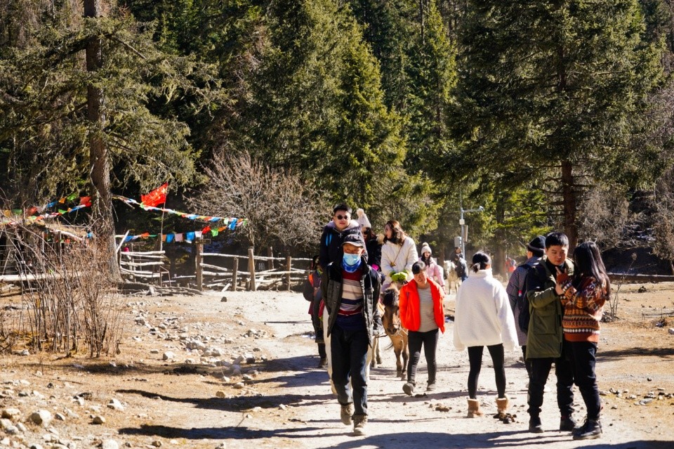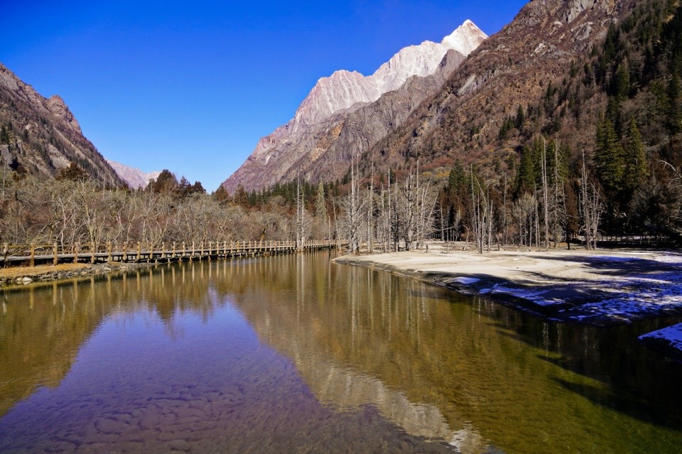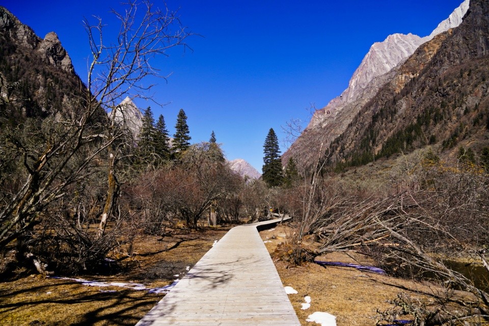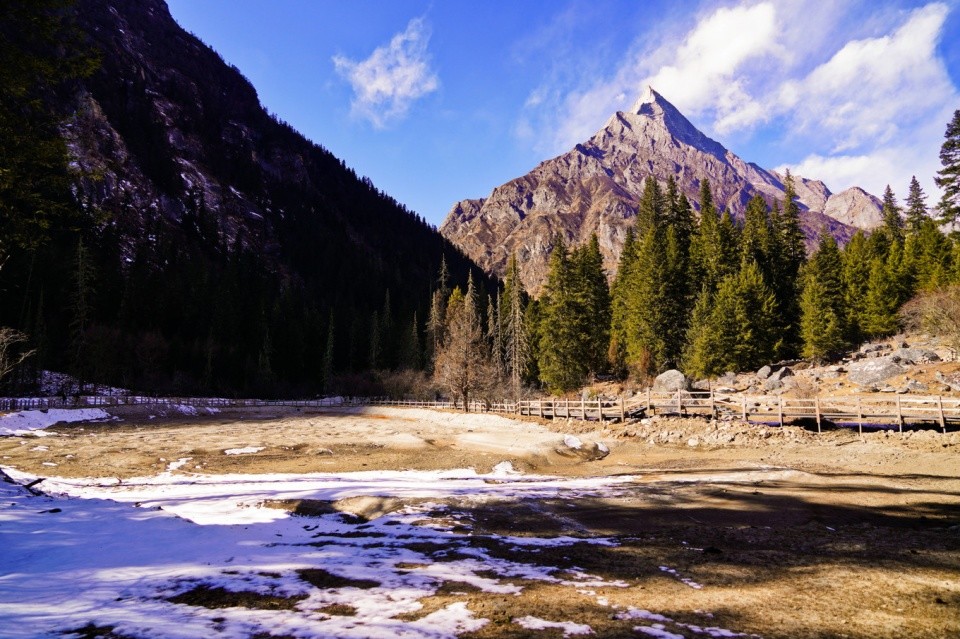 每一个人的心中都有一座山,虽然并非每个人都热爱登山,但是山峰就像一个目标,令你向往高处,不断攀登,成就更优秀的自己。对于攀登者而言,人生是挑战一座又一座的奇丽山峰。在川西的沃土之上,一座座险峻的高山成为了探险家们的乐园。而今最火爆的就是新洛克线始端的“长坪沟穿越毕棚沟”,一路奇遇河谷、草甸、原始森林、海子、雪山、高原牧场、绝美日落……沿途的风景,美不胜收。驴友们称:身体在炼狱,眼睛在天堂,人生在世,必走一遭。 1928年美国探险家落克,从四川木里水洛乡徒步至亚丁,一路奇遇壮丽的美景,随即“香格里拉”一词由此。而后许多徒步爱好者,开始追寻着洛克的足迹,去到这片秘境,一为其旷世美景,而为挑战自己。 当下随着时间长河的流逝,川西十大经典徒步路线中,备受冒险家们喜爱的就是新洛克线。新的洛克线的开始端是有着蜀山之后美名的四姑娘山。从四姑娘山的长坪沟出发,一路徒步经过喇嘛寺、枯树滩、木骡子、水打坝、叉子沟尾、垭口、盘羊湖,最终抵达毕棚沟。这只是洛克线的始端,也是很多人的终点。不要小瞧这一段路,耗费时间2天左右,才能徒步走完。很多挑战成功的驴友都笑称:刚从鬼门关走了一遭。 徒步四姑娘山的长坪沟,遇见最原始震撼的雪山冰川、森林冰湖风光。万顷森林,峡谷通天,古柏幽道沿途景色迷人,山与林,奇石与飞瀑……构成了一幅五彩斑斓的画卷。 景色宜人的长坪沟是徒步爱好者的乐土,从长坪沟穿越到毕棚沟也是许多徒步爱好者的人生梦想之一。长坪沟的景色以森林风光为主,从沟口深入沟内可以选择骑马或者徒步。步行的栈道,两旁的风光与马道的风光略有不同。 从步行栈道徒步沟内,首先会经过一座金碧辉煌的喇嘛寺,五彩斑斓的经幡包裹着圣洁的白塔。一排气势恢宏的白塔后方就是喇嘛寺的内殿,里面供奉着藏民们信奉的神明。经过喇嘛寺沿途森林风光无限好。参天古树,沙棘遍野,湖光山色,令人心旷神怡。 拾级而上,远处的山腰之畔,一湾冰瀑垂直而下,就像是贴了一块暖宝宝,显得格外的萌。其实,这正是虫虫瀑布所在之地,原本涓涓而下的瀑布,如今演变成了白茸茸的一道冰瀑,又像是一只作茧等待开春化蝶的蝉蛹,妙趣横生。 沿着栈道一路前行,远离城市的喧嚣,迎着冬日骄阳,在长坪沟静静的感受大自然的清新。经过虫虫瀑布之后,最值得期待的景观要数枯树滩了。原本平静清澈的湖面,因为湖中稀稀疏疏的枯树,显得格外神秘,又像是一幅可歌可泣的国画。 一路迎着雪山之巅向前迈前,走走停停,历经3个小时左右的时间,最终抵达了下干海子。由于长坪沟是主要以徒步、骑马为主,目前沟内还没有可以吃饭的饭店,只能在小卖部吃一点烤串、泡面、简餐。 继枯树滩之后,下一站就是干海子。干海子被分为了上干海子河下干海子两部分。这两个海子,确实是干枯的海子,没有一滴水。据说,曾经两个海子里都蓄满了水,因为河流的改道,干涸成了沼泽地。虽然干海子的景色显得略微普通,但是从下干海子途径上干海子的原始森林,却格外的美丽。郁郁葱葱的杉林直插云霄,杉林下方是厚厚的白雪,像是铺上了一块雪白的地毯。阳光透过婆娑的杉林,投射到冰雪之上,折射出耀眼的光芒,美极了。 长坪沟穿越毕棚沟,并非普通的游客能轻易挑战的徒步路线。倘若没有充足的准备,一定不能贸然前往。在干海子之后,前方的路还很长,路上的美景更是目不暇接。 人这一辈子并非一定要登山,但每个人心中得有一座山。从长坪沟穿越到毕棚沟,可以节省掉毕棚沟的门票。因此有人们称这是川西,最玩儿命的逃票攻略。有人觉得太不值得,而有人却觉得很值,你觉得呢? 6 m+ q3 \& E, g3 @