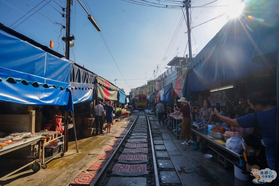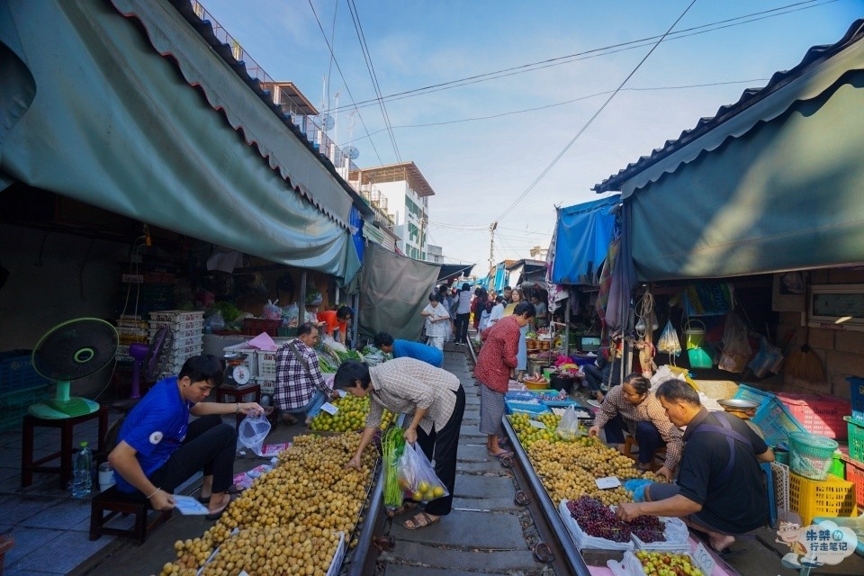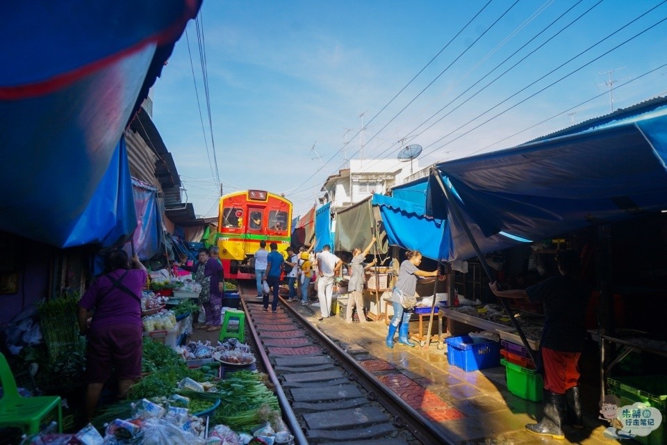 记得小时候学校离货运火车站很近,那时常跑到火车轨道上玩耍,当有火车靠近时,便会在听到鸣笛声早早躲开。如今长大了,便没了在铁轨上嬉戏的机会,一来是考虑到自身安全,二来我国法律也是明令禁止那样的行为。可是在泰国有一个非常著名的旅游景点,就是因为在一段正常运营的铁轨上的一番操作,才使得其声名鹊起,且被誉为泰国“八大奇迹”之一。它就是美功铁道市场。 美功铁道市场,位于泰国曼谷西部,距离曼谷80公里的夜功府,是一个售卖当地日常粮油蔬果的地方,简单来说就是一个菜市场。虽然它是泰国很有名的旅游景点,每天都有很多外国游客慕名而至,但这里出售的大都是常见的海鲜、蔬菜等食材,很少有贩卖纪念品的摊贩,因此游客在这里可以有机会见识到各种泰国土特产品与地道食材,真正接触了解当地的风俗民情。不过话又说回来,那究竟是什么原因让一个菜市场闻名遐迩呢?想必你已经晓得了,就是跟铁路有关。 当初泰国政府打算征地兴建铁路,可是当地居民却不肯搬迁,成了最牛钉子户,无奈之下政府只好妥协,允许摊贩依旧在原地做生意,但火车经过时必须收摊以保证火车能顺利进出车站。也正因为这段铁路,才使得这个市场声名鹊起。超过300家货摊拥挤在这段长约500米的铁轨两旁,每天都有火车从人头攒动的菜摊间不足2米的空隙内穿过8次,虽然火车时速不超过15公里,但给人的感觉依旧是惊险万分,因此美功铁道市场也因堪称世界上“最牛”、“最危险”的菜市场而备受关注,引得游人无数。 火车没来之前,这里跟我们平时所见的菜市场并无区别,人们穿行其间,挑选着自己所需要的货品,摊贩的叫卖声与买家的砍价声不绝于耳。可是当火车来临时,随着一声刺耳的鸣笛声,你就能见识到什么是真正的世界上危险系数最高的菜市场。只见刚才还挤满人群的轨道上,瞬间空无一人,摊主们更是以迅雷不及掩耳的速度将摊位收起。火车从身边掠过的瞬间,与人和货品几乎都是擦身而过,看起来十分惊险。整个过程约1分钟,然后一切又恢复如初,继续着菜市场内繁忙的买卖景象。 这样火车经过、摆摊收摊的场面,每天要重复八次之多,对于当地人来说早已是见怪不怪,但是对于外地游客来说,却是既新奇又刺激。作为泰国一个有名的市井风情胜地,美功铁道市场每天都会迎来很多游客,他们大都为了见识壮观的收摊景象,体验火车近身而过的刺激而来。如果你来的时候正好错过火车进站也别急着离开,因为你可以趁着下趟火车赶来的空档,好好逛一下市场,买一些心仪的特产,感受一下当地的风俗民情,尤其可以品尝一下地道的风味小吃,像蒸咸鱼、炸青蛙等都极具特色,在其它地方一般吃不到,大家千万不可错过。 8 @* ?# K( `- O; ~& }( N