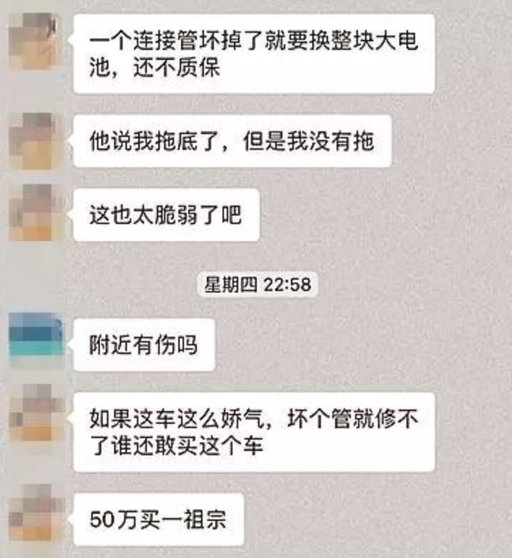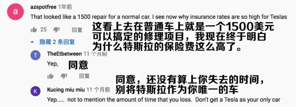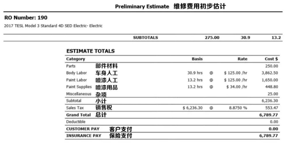 从Model 3到Model Y,一次次降价,让国产特斯拉的价格越来越香,但是日常用车,小擦小碰在所难免,特斯拉的维修费用怎么样? 在美国,越来越多的车主报告,即使是划痕、凹陷或轻微碰撞,特斯拉的维修费都高得惊人,以至于保险公司都调高了特斯拉各车型的保费。 不修不知道一修吓一跳 纽约车主克里斯买了一辆特斯拉Model 3,挪车时不小心把前翼子板撞出了一处长10厘米左右的凹痕。 克里斯Model 3撞出的凹痕 检查完车损,克里斯耸了耸肩,心想没什么大不了,可是特斯拉授权维修点的报价却令他大吃一惊——材料费加工时费,报价高达6789.77美元(约合人民币4.38万元)。 维修点员工告诉克里斯,撞凹的铝合金构件无法修复,只能订购原厂新件替换,外加“电镀蓝”车漆需要上三层油漆和底漆,这些都推高了维修报价。 而据在线汽车保险计算器Instant estimator测算,一辆奔驰C级在发生类似前翼子板损伤和掉漆事故后,评估维修价格仅为824美元(约合人民币5382元)。 特斯拉高昂的维修费用,也让知名汽车媒体The Fast Lane Car觉得“经历了一场噩梦”。 2019年4月,记者汤米在测试Model 3续航里程时撞坏车尾,后保险杠、引擎盖、车顶玻璃及尾灯等部位不同程度损坏。 汤米在被撞坏的Model 3 汤米根据经验,预估车损在6000美元左右,然而修车厂最后却列出了一长串条目:只有一条小裂缝的车顶玻璃要整个更换;轻微破损的车门要换原厂新件,然后重新喷漆…… 一长串的汽车部件更新表单 所有配件价格达到4509美元,再加上美国工时费高达52-120美元每小时不等,最后修理费用总计10369.36美元(约合人民币6.69万元),相当于撞掉了四分之一辆特斯拉Model 3的价格。 更糟糕的是,很多原厂配件需要订购,因此汤米等待了2-3个月才完成修复工作。 看完The Fast Lane Car维修特斯拉的经历,网友忿忿不平: “看上去在普通车上就是一个1500美元可以搞定的修理项目,我终于明白为什么特斯拉的保险费这么高了。” 还有网友表示,一旦Model 3遇上事故,与其耗时费力修修补补,还不如彻底撞坏报废,再买辆新的来得省事。 国内也频现天价修车单 国内工时费没有美国这么高,但特斯拉同样让人直呼“买得起、修不起”。 深圳特斯拉Model 3车主@哈英那在网上晒出过一张维修费用清单。 车辆左前部位被其他车剐了一下,前翼子板变形、轮毂盖及前保险杠划伤,加上侧转向灯破损,修理厂评估都需要换新喷漆,车门钣金也需做调整修复。 车主@哈英晒出的Model 3受损部分 一个剐蹭事故,整套配件加上工时费,维修费用高达1.27万元。 可是跟其他车主相比,@哈英那还算“幸运“。 今年1月,特斯拉Model 3车主高女士在网上曝出一份天价维修单。 一天,高女士在路上突然发现系统提示动力不足,去授权维修点检查后发现,底盘一个连接防冻液和电池组的管子断了。 维修点称,这个连接管坏了,只有美国可以修,国内修不了,只能连电池组一起更换,费用约为15万元,而且还认定这属于人为因素造成,不在质保范围之内,车主必须自费更换电池。 维修点发现原因在于底盘连接防冻液和电池组的管子断了 这让高女士难以接受。她认为,管子坏了就要换一整块电池,那是特斯拉的设计问题,假如燃油车发动机一个管子坏了,也不可能出现更换整个发动机的情况。 “如果特斯拉车主们知道自己的爱车这么‘娇气’,谁还敢开上路?”高女士说。 在抖音上,也有成都Model 3车主曝出,自己修车两次,一次是车后侧与水泥柱剐蹭,维修费用为1.6万,另一次右前门一个小按钮坏了,维修费用3600元。 成都Model 3车主@舒服不雷晒出修复价约1.6万元的剐蹭 @舒服不雷晒出一个按钮维修就花3600多元 为什么特斯拉维修这么贵 特斯拉的高端车型采用铝合金车身,Model 3/Y则是钢铝混合车身,而铝合金车身如果变形幅度过大,很难通过钣金修复,只能从原厂订货,将受损部位整个换新。 特斯拉铝合金车身 汽车保险研究机构Zimlon曾分析过特斯拉的配件成本,以Model S为例: 引擎盖为1300美元(约合人民币8392元),前保险杠总成为1650美元(约合人民币10651元),前翼子板为999美元(约合人民币6448元),后侧门为930美元(约合人民币6000元),天窗为4500美元(约合人民币29048元)。 而且一旦涉及到电池损伤,那维修价格就会变得非常高昂。 最近一位美国特斯拉Model 3车主,因撞上石头导致电池损坏,更换电池的材料费就达到了1.35万美元(约合人民币8.8万元),加上工时费及其他费用,维修费高达1.65万美元(约合人民币10.6万元)。 高昂的维修费用,也推高了特斯拉的保险费用。 美国Gabi保险经纪公司调查发现,Model 3平均年缴保费高达2814美元(1.9万人民币),而保时捷911的平均年缴保费也才2849美元,远远超过1920美元的全美汽车平均年缴保费。 而Model S与Model X的平均年保费更是高达3410美元(2.3万人民币),逼近奥迪R8(3519美元)的水准。 高额维修费炸出民间高手 面对高昂的维修费用,美国一些特斯拉车主只能自己动手,丰衣足食。 西雅图车主格雷格的Model S已经开了五年,车尾灯漏水,门把手也失灵了,因为车辆过了保修期,他一打听发现修好爱车可能要花上14000美元(约合人民币9.23万元)。 门把手失灵的Model S 格雷格不是机械工程师,但是修过自家坏掉的家电,于是打算自己动手试试。 他拆开Model S一看,发现汽车构造比他想象得简单得多。 “他们制造了一辆和乐高玩具一般的汽车,如果你会拼乐高,你就会组装特斯拉。” 格