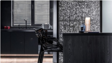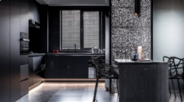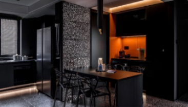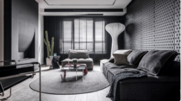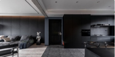6 \) z3 T* ?% h% f" R: W+ R! A设计风格:现代简约 面积户型:125m2 预算:30万 本案的主人是一对90后夫妻,男生是医学博士后,女生有着自己的培训机构,他们也和大多数年轻人一样,对潮流与时尚保持着高度的敏感。而本案,大面积的黑色基底下藏着男女主人很多居家的小心机。 2 o5 v6 B& b% D9 D0 ^8 ] T
