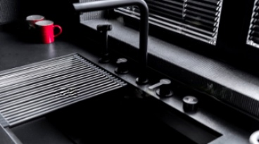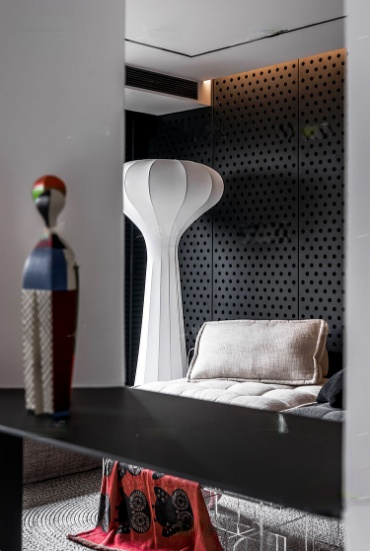1 A C% C; y3 ]2 Y, ~6 L$ h业主对黑色的接受度非常高,虽是大面积的黑色,但不同材质不同线条的变化和层次,各种富有艺术美感的摆件及装饰,剔去沉重,反而彰显层次和质感,这个家在神秘中大放异彩。7 R1 N) J5 P: |& F- w @$ v