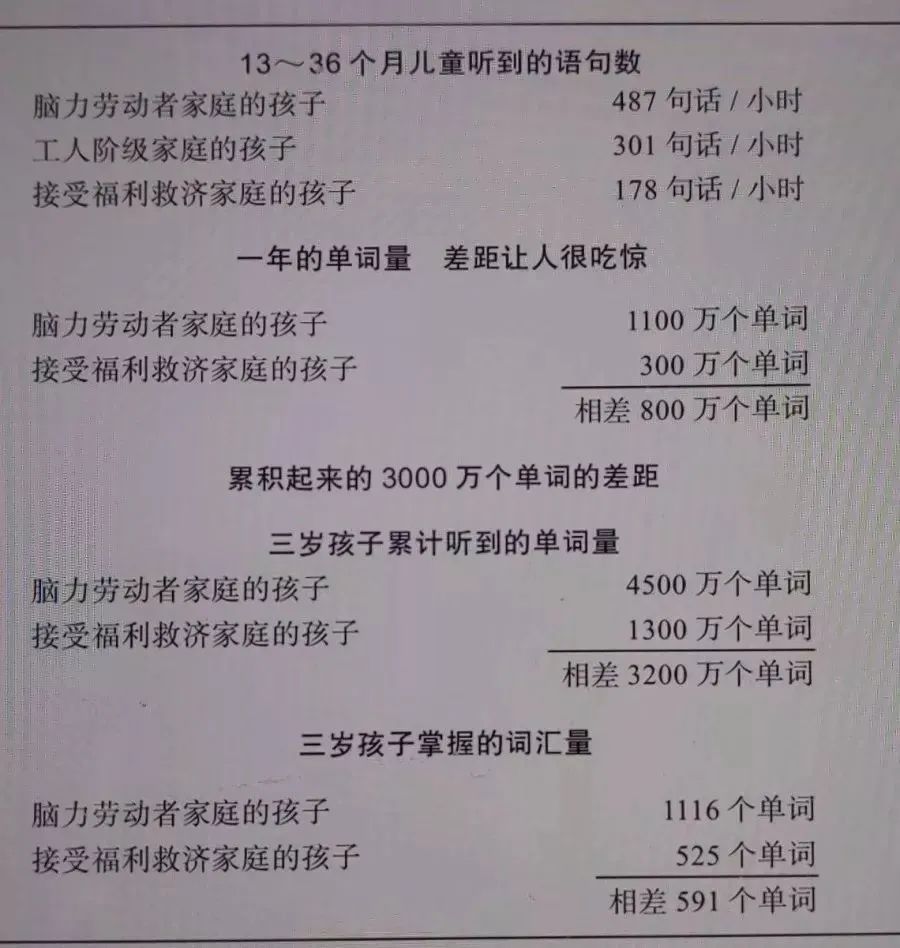 昨天在办公室,被同事5岁的女儿团子圈粉了。 同事们看团子可爱,就过去逗她:“你觉得爸爸好还是妈妈好?” 团子眼珠一转说:“妈妈和爸爸都是圆,都占大部分。” 听完,我们一时没懂,都看着团子,团子就开始用手比划:“我是说,我的喜欢有这么大,是个大圆,爸爸、妈妈、弟弟都在里面,都是很大的小圆......” 我们都愣了一下:“怎么听着,那么像数学课上学的包含和被包含关系呢。” 团子妈笑了,说:“每次团子问她爸更喜欢自己还是弟弟时,她爸就给她‘画圆’,还唠叨个没完。” 这让我想起了李玫瑾教授的观点:如果一个孩子话多、不认生、表达能力好,平时他身边一定有家长经常跟他说话。 父母爱说话,不仅影响着孩子的表达能力,还间接影响着孩子的智商和心理健康。 孩子的大脑发育有3个黄金时期,分别是:0-3岁,3-7岁,7-10岁。 对处于这些黄金时期的孩子来说,父母与孩子的聊天质量,直接影响着孩子的智商、情商。 聪明的孩子,是父母聊出来的 表姐家两个男孩,原本都爱说爱笑,但因为工作太忙,老大就送到奶奶家照顾。 1年后,4岁的老大被接回来时,竟变得“愣愣的”。不仅话少,而且用词都特别简单。 朋友了解后才发现,奶奶腿脚不好,很少带孩子下楼玩,平时又很少说话,经常播放动画片给孩子看。 原以为,动画片也在不断说话,同样有助于孩子学语言,却没想到,时间久了,孩子的表达能力竟然落后了。 实际上,孩子学东西,靠的是反馈。 经常对着电视的孩子,他们说完任何话,电视都没有反应,孩子根本不知道自己说的对不对,也就没办法在头脑中把新词和实际生活的表现结合起来。孩子不会用,也就不敢用。 科学家还发现:电视每开1个小时,孩子从父母那里听到的词汇量就减少500-1000个。 可直接塑造孩子大脑的,正是父母的语言。 美国社会学家耗时2年半,跟踪42个家庭,选取1-3岁的孩子,记录父母和孩子之间的聊天对话。 研究发现,脑力劳动家庭中长大的孩子,父母不停地跟孩子说话,孩子平均每小时能听到487句话; 而在福利院或从事重体力劳动家庭中长大的孩子,很少有家长和他们聊天,每天只能听到178句话。 到孩子们4岁前,在父母说话频次不同的家庭,孩子听到的词汇量差异,竟然高达3000万。 听到单词最多的孩子,智商有117,听到单词最少的孩子,智商是79。等到孩子们10岁时,研究人员回访时又发现,词汇量大的孩子,学习成绩普遍偏高。 这也证实了,父母和孩子说话的多少,影响着孩子的表达能力,也间接影响着孩子的智商。 很多父母都知道,好学校是资源,学区房是资源,却很少意识到,父母的语言,也是孩子非常重要的教育资源,而且,还是免费的。 父母积极的语言越多,孩子的心理越健康 李玫瑾教授在演讲中还讲过一件很有意思的事。 一次,她刚上电梯,就有男孩和她打招呼:“奶奶,您还没按去哪层呢!”她冲孩子笑笑说:“谢谢你,奶奶知道了。” 李玫瑾教授说,从这一句话就可以看出,孩子至少有2个家长在带。除了妈妈,肯定还有爸爸、爷爷奶奶或姥姥姥爷参与。 孩子参与的日常对话多,思维就更灵活,也更容易想得开。 朋友和丈夫去幼儿园接孩子回家,途中遇到点急事,等他们赶到幼儿园时,园中空无一人,只有孩子和老师在游戏室里聊天。 孩子看见爸爸、妈妈来了,颠儿颠儿地扑进妈妈怀里,委屈地说:“妈妈,你终于来了。” 朋友鼻子一酸,就在想要说“对不起”的瞬间,丈夫拦住了她,转头对孩子说:“哎呀呀,孩子,你看你多幸运呀,这么大的游戏室,就属于你自己啦!” 孩子一愣,竟然笑了:“对呀!爸爸,我告诉你,刚才老师还带我做游戏了......”一转身,孩子变得欢蹦乱跳。 一句简单的话,就让孩子学会了看到事情积极的一面,把脆弱瞬间变成了乐观。 日本积极心理学家久世浩司研究发现,最容易导致孩子形成悲观思维的,就是对父母的悲观言行。 当父母先改掉悲观的口头禅,用积极的心态去看待问题,孩子会更容易克服困难,养成乐观性格。 父母会说话,孩子更会表达 我问朋友:“你小时候喜欢跟爸妈聊天吗?” 她皱着眉头说:“我的妈呀,我最怕跟我爸聊天,无论聊什么,他都能给你落在好好学习上。” 一句话把我逗笑了,这不就是无数亲子聊天的缩影吗? 俗话说,聊天是门艺术,好的聊天技术,不仅能增加亲子感情,还能调动孩子的大脑思维,养出聪明宝宝。 1、少用封闭式提问,多提开放性问题 对父母来说,最难的可能就是,不知道怎么跟孩子聊天。 叶一茜为此就很苦恼。她曾经在微博上晒出和女儿森碟的聊天截图,配文说:和森碟聊天,每一句都是ending。 其实,只要把“封闭式提问”变成“开放式提问”,母女就可以聊起来了。 具体怎么聊呢?可以多借用5w模式,也就是who(询问人物)、when(时间)、where(地点)、why(为什么)、how(怎么办),问一些敞开式问题,激发孩子的表达欲。 孩子:妈妈,我太喜欢《小猪佩奇》里的乔治了。 妈妈:我也喜欢乔治,我觉得他很可爱,你呢,喜欢他什么呢? 孩子:我喜欢看他跳泥坑。 妈妈:哈哈,他好像还跟谁参加了跳泥坑比赛是吗? 孩子:妈妈,是乔治爸爸,他还有一双跳泥坑的大靴子呢。 …... 还可以借用一些常用句式: “你觉得......我们该怎么办呢?” “你看完......有什么感觉?” “如果......接下来会发生什么?” 如果他说得很棒,一定别忘记表扬,告诉孩子,妈妈真为你骄傲。 如果孩子说错了,我们也可以耐心引导,但千万不要粗暴地打断孩子