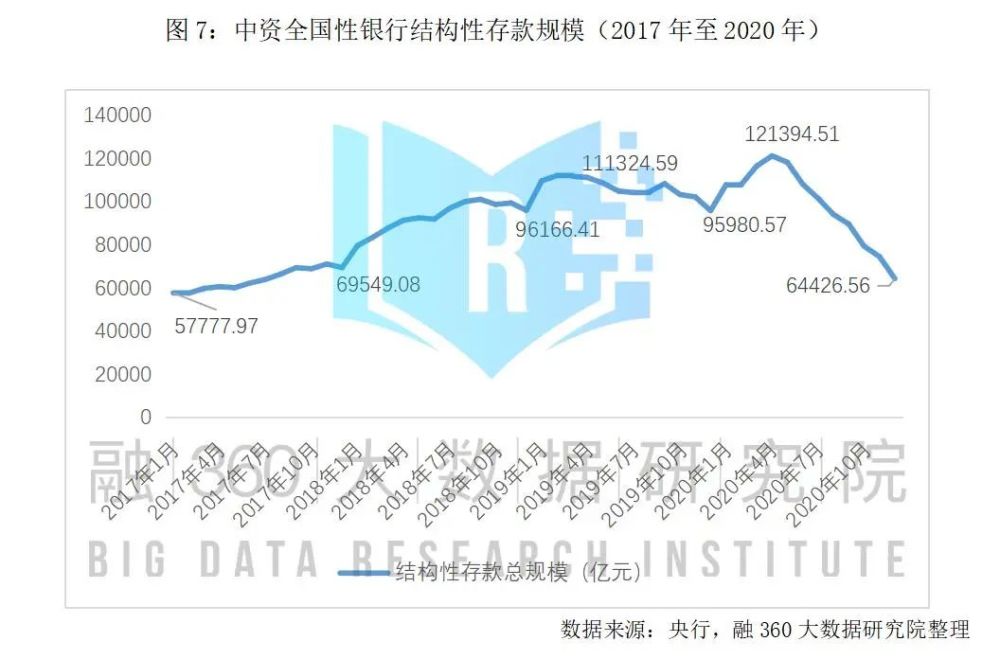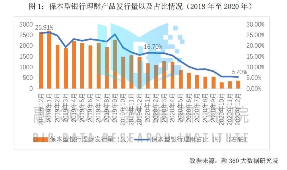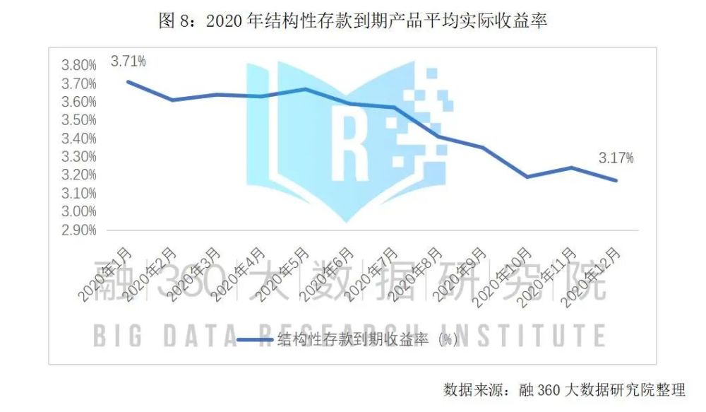 2020年原本是银行资管新规的收官年,但受到突如其来的“新冠”疫情影响,银行资管新规的过渡期延长至2021年底。虽然这一年银行净值型理财的转型之路取得了巨大飞跃,理财子公司的产品也开始逐步被投资者接受,但真正的非保本净值型银行理财产品在银行原有的热衷保本的客群中接受度依然偏低,“保本高息”的创新互联网存款产品、结构性存款、靠档计息的大额存单、保本理财成为2020年银行理财客群追捧的产品,2020年监管对这几类产品连出重拳,下架清理、压缩规模以降低银行揽储成本、保障市场公平的竞争环境。2021年,传统的预期收益率型银行理财产品将逐步退出市场、银行理财子公司的产品竞争将拉开帷幕,“保本高息”类产品将逐步消失。 — 1 — 银行理财净值化转型加速 收益率下行 2020年保本型银行理财加速退出,交通、邮储、兴业等多家大行公布保本理财产品清零,非保本净值型理财产品逐步成为市场主力。 据融360大数据研究院不完全统计数据显示,2020年披露收益类型的银行理财产品中,保本型银行理财产品发行量为9149款,同比2019年下降61.5%,2020年保本型理财产品的占比为11.28%,同比下降10.51%。从2020年5月起,保本型银行理财产品的发行量占比持续大幅下滑,年底占比仅为5.43%,较1月份下跌11.27%。 据银行业理财登记托管中心统计数据显示,截至2020年底,非保本浮动收益类理财产品存续3.9万只,存量规模为25.86万亿元,较2019年增加2.46万亿,较2013年增长近4倍。 2020年净值型银行理财产品占比快速提升,2020年底净值型理财产品存量规模达17.4万亿元,占比达67%,较2018年的27%有大幅提升。 2020年受到疫情影响,宏观货币政策持续保持宽松状态,以固定收益类投资品种为主的银行理财产品预期平均收益率持续下行,从年初的4%下跌至10月份的3.72%,年末翘尾小幅反弹至3.79%,但仍较年初下降21BP。 从银行理财产品的到期收益率走势来看,自2018年以来,封闭式理财产品的实际兑付收益率也持续下行。2020年非保本理财产品实际兑付收益9932.5亿元,同比增长7.13%。封闭式理财产品兑付客户平均收益率为4.05%,较2018年下降92BP。 — 2 — 3年期大额存单发行量占比下降 利率明显降低 据融360大数据研究院不完全统计,2020年披露大额存单发行信息的银行共发行7466只大额存单,较2019年下降16%。其中3年期大额存单发行量依然是市场主力,2020年3年期大额存单发行2930只,占比为39.24%;其次为1年期限大额存单,发行1489只,占比19.96%。 由于银行发行大额存单规模都需要年初向央行报备,每家银行大额存单规模有限,因此大额存单一般年初额度充足、发行规模较大,下半年就会出现额度不足情况,发行量明显下降。 分期限类型来看,3年期限的大额存单依然是主力军,但其2020年下半年发行量占比下降,1年期大额存单占比小幅上升,其他期限的大额存单发行量占比较小、相对稳定。 从利率来看,2020年各期限的大额存单平均利率均有小幅下降,但短期限的大额存单平均利率下跌幅度均小于5BP,长期限大额存单平均利率跌幅相对较大,3年期大额存单平均利率从1月份的4.15%跌至4.03%,下跌12BP;5年期大额存单平均利率下跌28BP,由4.29%跌至4.01%。5年期大额存单单月发行数量较少,收益率相对波动较大。融360大数据研究院认为,3年期大额存单发行量和利率下行,说明银行也在调整大额存单的产品结构,逐步加大低息的中短期大额存单占比,从而降低负债端成本。 — 3 — 2020年结构性存款规模压降近半 到期收益率走低 2020年结构性存款规模先扬后抑,年初大幅飙升,2020年4月末达到12.13万亿元的峰值。2020年6月份,银保监对中小银行窗口指导,要求结构性存款规模在2020年底压降至年初规模的三分之二,结构性存款规模自5月份起开始连续下降,到2020年12月压降至6.44万亿元,压降规模接近峰值12.13万亿的一半,已经基本回到2017年的水平。其中中小银行压降规模4.05万亿元,压降比例达71%。 大型银行结构性存款个人结构性存款规模占比高,而中小型银行机构结构性存款规模占比较高,因此中小银行压缩结构性规模主要压缩的是机构结构性存款规模。 从收益来看,到期结构性存款产品平均实际收益率持续下行,据融360大数据研究院不完全统计,2020年披露到期实际收益率信息的结构性存款产品,平均实际收益率从年初的3.71%下降至3.17%,下跌54BP。 — 4 — 高息互联网存款产品受追捧 监管强制全线下架 自2018年资管新规发布后,门槛低、“刚兑”且收益率远超普通存款产品的传统银行理财产品进入转型期,逐步转向非保本的净值型产品,收益率也由于货币政策持续宽松不断下滑,对偏好保本保收益的低风险投资者的吸引力不断减弱,在这样的大环境下,互联网存款产品逐步进入公众视野,民营银行以及区域性中小银行依托京东金融、度小满、支付宝等互联网平台的流量优势,推出保本高息的互联网创新存款产品,受到了越来越多的投资者关注,规模也不断扩大。 从收益水平来看,部分银行的7天期互联网存款产品能达到3.6%以上的水平,一个月期限的存款产品能达到4%,远高于同期限的存款产品,甚至是高于非保本的银行理财产品。 监管为防范流动性风险,降低银行负债端成本,多次出台相关规定,对利用靠档计息、周期付息等方式包装的短期高收益存款产品进行清理整顿,2020年年末互联网创新存款产品从第三方互联网平台全线下架。 