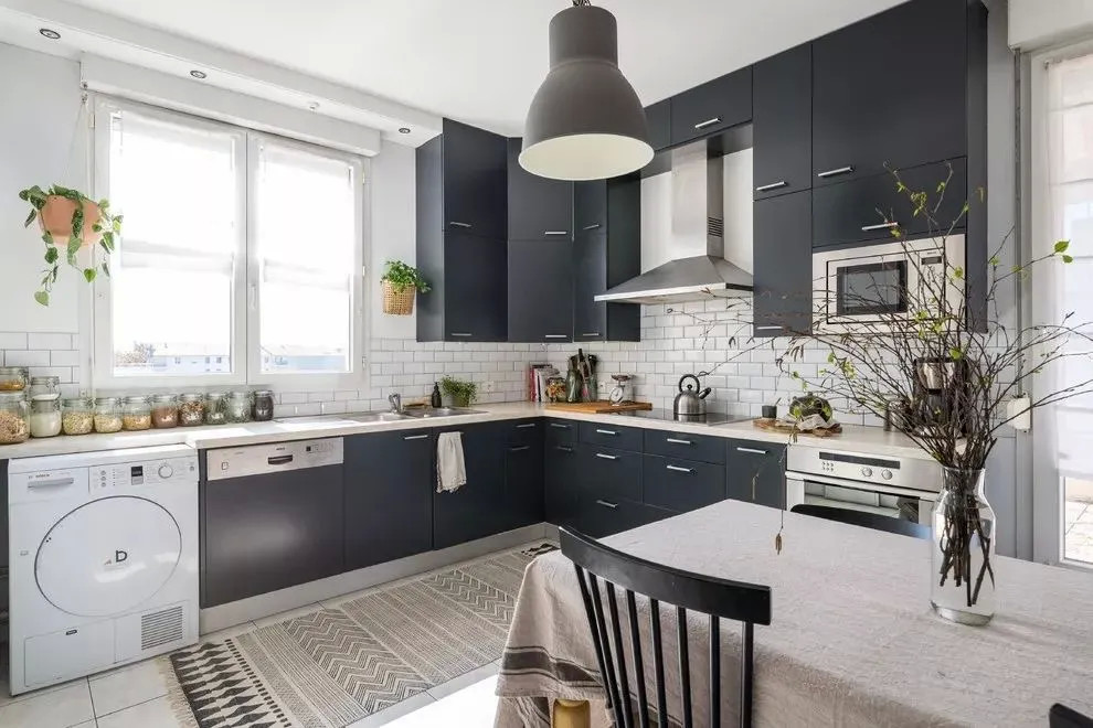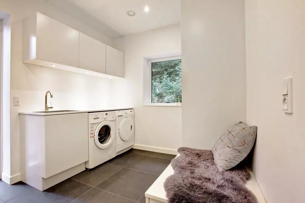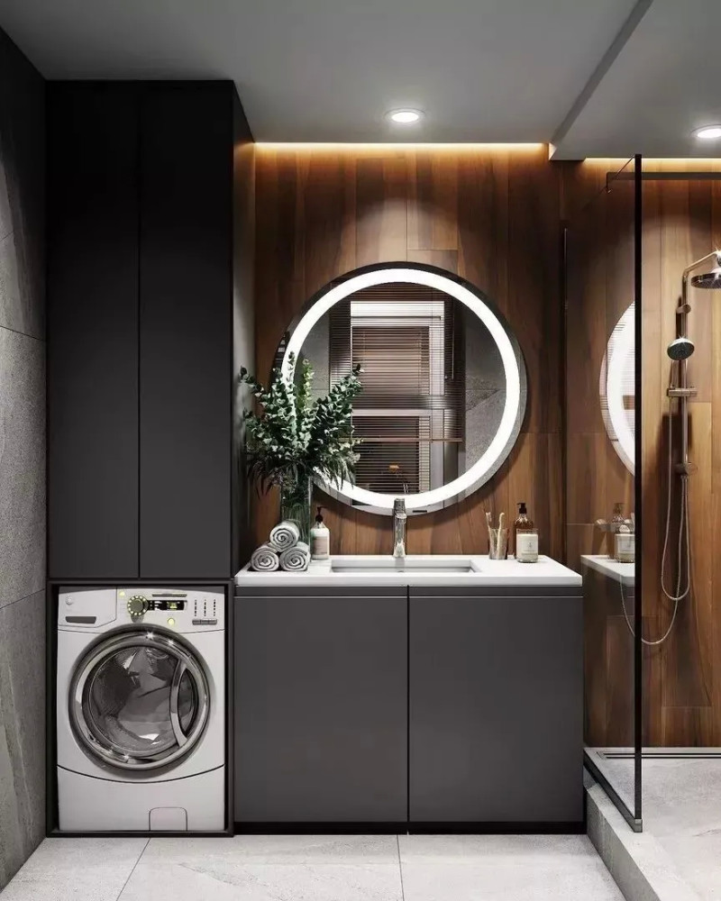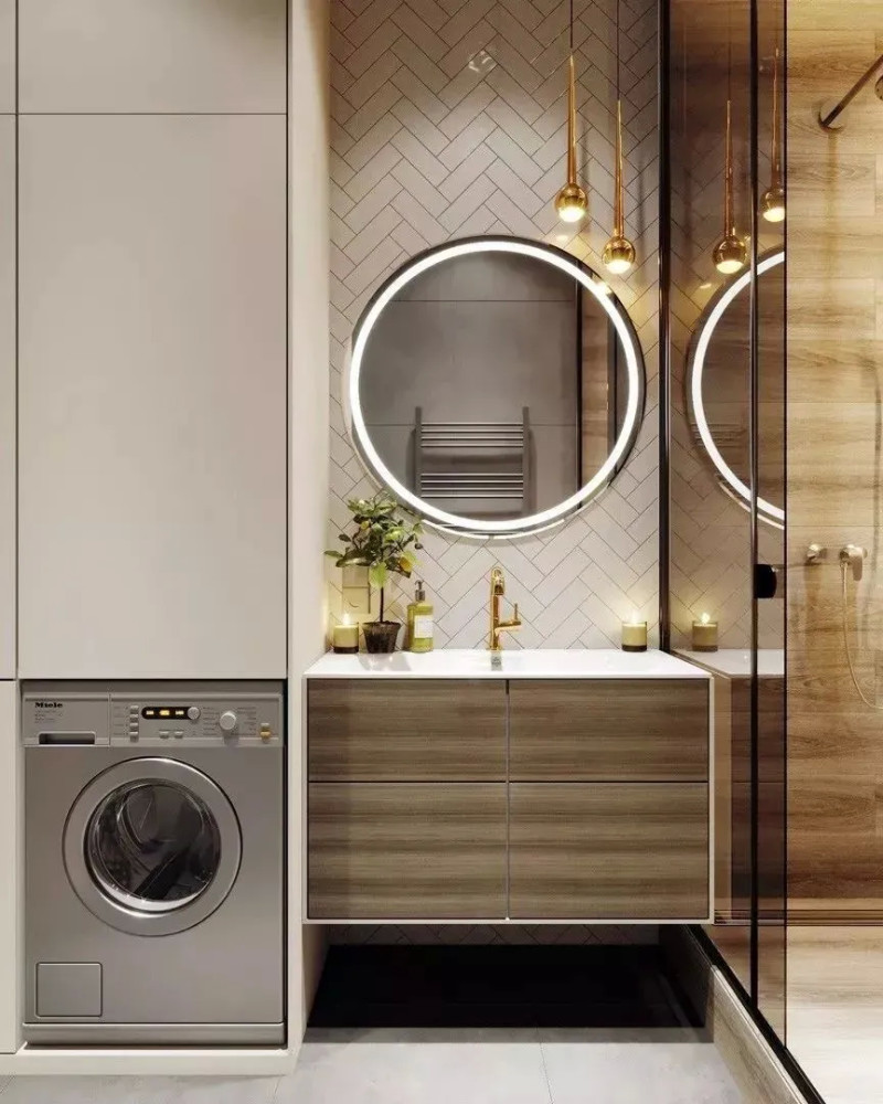 洗衣机是家家必备的电器,一般来说,是放在卫生间居多。 但如果遇到小户型,卫生间放不下,那该怎么办?这个时候,我们可以换个思路,想想家里还有什么地方可以放洗衣机。今天就来看一些别人家是怎么灵活运用的吧! 01同样是放在卫生间,你还可以这样做 很多人都会首选在卫生间放洗衣机,方便换洗衣服。但他们并没有好好利用洗衣机上方的空间,而是让它空着。其实,可以在洗衣机上方上加一个柜子或是隔板,放放洗衣液、护理液之类的物品,收纳能力翻倍,还能为卫生间扩容。 也可以将洗衣机完全隐藏在柜体里,打造简约的现代感。尤其是小户型的空间,越是简洁,越是大气,洗衣机完全可以藏起来。 02 放在阳台,方便晒衣服 阳台光线充足,晾洗衣物非常方便,所以也可以把洗衣机顺势放这里,洗完衣服直接晾晒。 但如果采光很好,光线太足,有人会担心把洗衣机晒坏。这时,可以根据自家的洗衣机尺寸,打造一个封闭式橱柜/台面,把洗衣机靠里放。 03嵌在厨房橱柜里,新尝试新体验 最近几年,洗衣机放厨房成了新的流行趋势。高低操作台的设计让洗衣机在厨房也有了安身之地。厨房里密布水源与电源,用水、用电都方便。 04 独立洗衣房,你值得拥有 在家里,也可以利用一些角落,比如类似楼梯下方、不规则墙面构成的鸡肋角落,提前规划好水电路,就能加以利用变身独立的洗衣区。 4 G6 v& c6 K) N