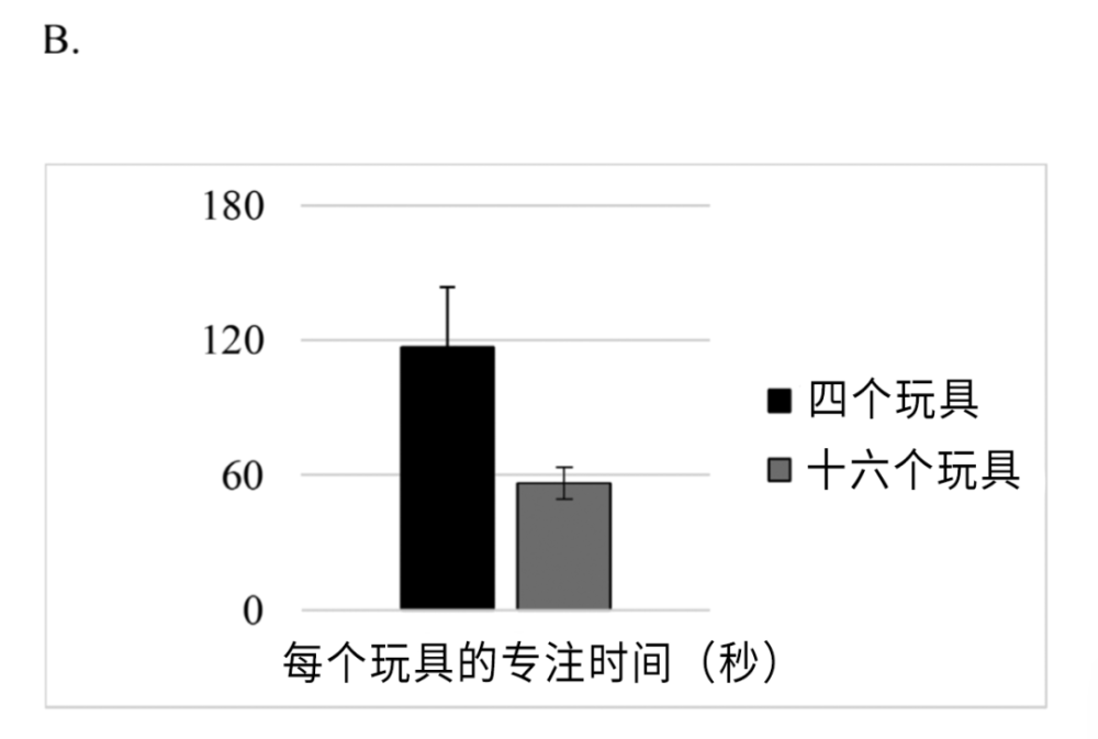 很多爸爸妈妈留言跟我们说,有娃之后,看到新奇的玩具,总是忍不住抱回家;逛街、节日、生日,也总想给娃买玩具;娃也是路过玩具店就非要买。 就这样,家里玩具越来越多,但娃常常拿起一个玩具玩两下就放下,又去鼓捣其他的,好像每个都没认真玩。 有人说,玩具太多,会让孩子难以专注,是真的吗? 玩具数量多少 会影响孩子专注力 图片来源:站酷海洛 2018 年,美国托雷多大学的研究人员找了 36 名 18 个月到 30 个月的宝宝,让他们分别单独在有 4 个玩具(4 个种类,每种 1 个)和 16 个玩具(4 个种类,每种 4 个)的环境中玩,然后观察孩子的行为。 他们发现,当只给孩子 4 个玩具,孩子玩得更好。 只有 4 个玩具的孩子,更少换来换去,每一个玩具都玩得更久;有 16 个玩具的孩子,同样时间里,明显专注时长更短,换玩具更频繁。 15 分钟里,有 4 个玩具的孩子,平均换玩具的次数是 10 次 有 16 个玩具的孩子,平均换了 20 次 图片来源:The influence of the number of toys in the environment on toddlers’ play 在 15 分钟里,有 4 个玩具的孩子,玩每个玩具的平均时间是 2 分钟 有 16 个玩具的孩子,玩每个玩具的平均时间是 1 分钟 图片来源:The influence of the number of toys in the environment on toddlers’ play 除了玩耍时间的差异,孩子的玩法也有差异。 有 4 个玩具的孩子,玩的方式明显更加多样:比如敲打、配对、倒空、感官探索、把玩具聚在一起、用玩具去扮演、把一个玩具放到另一个玩具里面等等。孩子每种玩具平均玩出了 11 种不同的玩法,玩法的多样性提升了 63%。 而有 16 个玩具时,孩子每种玩具平均只玩出了 7 种玩法。 图片来源:The influence of the number of toys in the environment on toddlers’ play 为什么会这样呢? 因为儿童,尤其是 3 岁以下的儿童,注意力的控制能力还在发展当中。他们还不能像大孩子一样,屏蔽环境中的干扰,把注意力集中在想玩的玩具上。 总是能看到很多玩具,他们的专注力就会被干扰,就会忍不住再去看看别的,导致每个玩具都玩不了多久,也难以沉下心来玩出更多玩法。 电视的背景音也会造成同样的干扰。 因此,在儿童发展领域,专家会建议家长降低环境中的干扰,让孩子有更多机会去专注下来,使专注力获得发展。 玩具对孩子真的很重要吗? 答案出乎意料 图片来源:站酷海洛 现在很多孩子的玩具过剩,是因为家长觉得,玩具是孩子童年快乐的必需品,不能亏了孩子。 其实,就算没有玩具,孩子也能「玩」得很好,甚至比有玩具时玩得更有创造力。 1990 年代,德国学者在慕尼黑一所幼儿园进行了为期 3 个月的无玩具实验。他们把班级里的玩具都拿走,只剩下了基础的生活用品,如吃饭用的桌子,睡觉用的毯子,想看看会发生什么。 结果发现,当没有了玩具,孩子们的游戏反而变得更有想象力、更复杂。他们用毯子搭在桌子上做帐篷、做山洞,还用上各种篓子、搭出很多充满想象力的建筑。 图片来源:站酷海洛 玩具的匮乏,让孩子们花大量时间一起思考、谈话、想办法:「我们都需要什么来建一个帐篷?」 「从哪能搞到木头?」「我们可以去树林里找些树枝来」「如果我们再也没有玩具了怎么办?你会很想念哪些玩具?」「我们真的需要它吗?」 没有了玩具,孩子们就成了彼此的玩具,他们变得更加了解彼此,更加团结。他们会说「我很伤心,因为我的朋友病了」。而在实验开始之前,他们还常常因为玩具出现冲突,彼此间也是竞争远多于合作。 图片来源:站酷海洛 孩子们长期被物质的富足包裹着,很容易形成依赖。因为他们习惯了不断地从物质上寻求刺激,所以觉得,没玩具就没法玩了。 但是,当玩具真没有了,大量无聊的时间反而激发了孩子去思考、去创造。创造的过程中,他们重新认识了自己、认识了身边人,于是变得更加自信、乐观。 少了玩具,孩子也能很快乐。 家里已经有很多玩具 怎么合理安排? 如果家里已经有很多玩具了,家长也不必为此担心和焦虑。 因为大量玩具对专注力的影响,主要是视觉上的。 家里的玩具,可以把大部分收纳起来,只留几种孩子目前最感兴趣的在外面,定期轮换。 根据孩子年龄段特点,建议提供的玩具类别、摆出来的玩具数量如下: 0~1.5 岁 视听闻味触感官类、运动类玩具,2~4 个。 图片来源:站酷海洛 1.5~3 岁 激发想象力、创造力的开放性游戏材料:比如纸、画笔、橡皮泥、积木、火车轨道、娃娃家、沙水工具,4~6 个/套。 图片来源:站酷海洛 3~5 岁 角色扮演、合作游戏材料:如角色扮演材料、桌游、合作体育运动类如篮球、足球。摆出多少玩具,以孩子能自主把它们有序收好为标准,建议不超过 20 个。 图片来源:站酷海洛 除此之外,家里的毛毯、水、盆、刷子、纸巾等等,都可以是孩子的「玩具」。外出他们可以和小朋友玩,玩树叶、玩石子、玩土、玩水坑等等。 任何能够调动孩子专注力的、不会上瘾的事情,比如去爬山、徒步、和爸爸妈妈聊天、画画、阅读,甚至帮妈妈做家务都是玩的一种,不仅有利于大脑发育,还能避免物质生活与精神生活的失衡,促进心理健康。 孩子的快乐与大脑发展,需要的并不是「玩具」,而是「玩」。 玩具不是必须的,也不是越多越好。少而精的玩具,不仅能让孩子玩得更投入、更深入,也让家长更轻松。