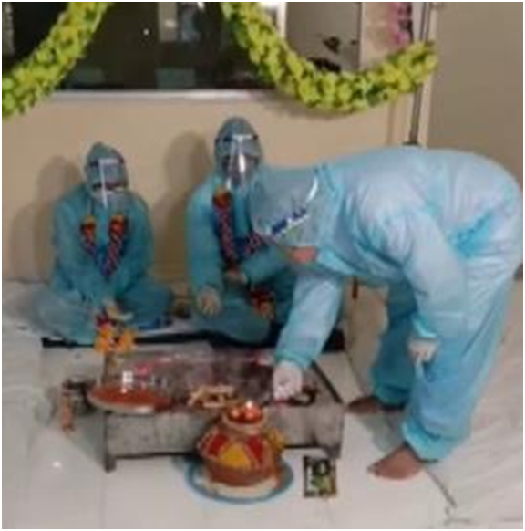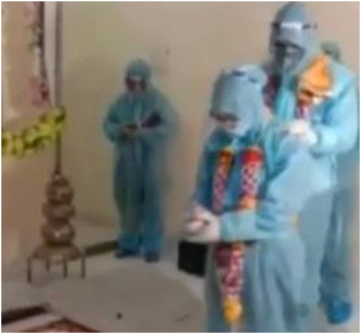 印度疫情形势严峻,很多人都因无法得到及时救助而死亡。近日,一名来自印度中央邦的年轻男子在婚礼前2天得知自己感染上新冠肺炎,但他仍在医院与未婚妻举行了婚礼。 据外媒报道,近日,一名感染上新冠肺炎病毒却仍与未婚妻举行婚礼的男子得到了很多人的关注。目前,他正在中央邦的医院接受治疗。 据悉,这名男子是在4月19日得知自己感染上病毒的,而且本打算在4月21日举行婚礼。让人意想不到的是,这对恋人并没有因此推迟婚礼,而是于当天在医院穿着防护服结婚。 面对当地媒体的采访,中央邦警方代表称,当他们在得知这名感染病毒的年轻人在医院举行婚礼的消息后,立即赶到现场试图制止。 “当时,我们在得知此事后立即赶到了现场,但这名男子的家人却称这场婚礼是在得到当地相关部门允许后才举行的,而且在场的人都穿上了防护服。于是,我们联系了相关部门的领导,对方称事实确实如此,但他们要求在场的所有人都要做好防护措施。”中央邦警方代表称。 据报道,这场婚礼只有8人参加,其中包括神父、双方家庭成员和几名当地警方。而且,这对新婚夫妇都穿着蓝色防护服,戴着手套、口罩、眼镜和防溅罩等。 其实,除了这对夫妇之外,在印度其他地区也有很多恋人在得知一方确诊新冠肺炎后,仍决定如期举行婚礼,而且当地政府也没有明令禁止。 网友们在得知这一现象后,也纷纷发表了自己的看法。其中,有网友表示,做好防护措施的情况下,其实也是可以如期举行婚礼的,但同时一定不能让太多人参加婚礼。 此外,也有大部分网友则表示,在疫情严重的时候,婚礼以及其他事情都可以取消,这是最保险的做法。所以,也希望当地官员能重视起此事,以免加剧传播。