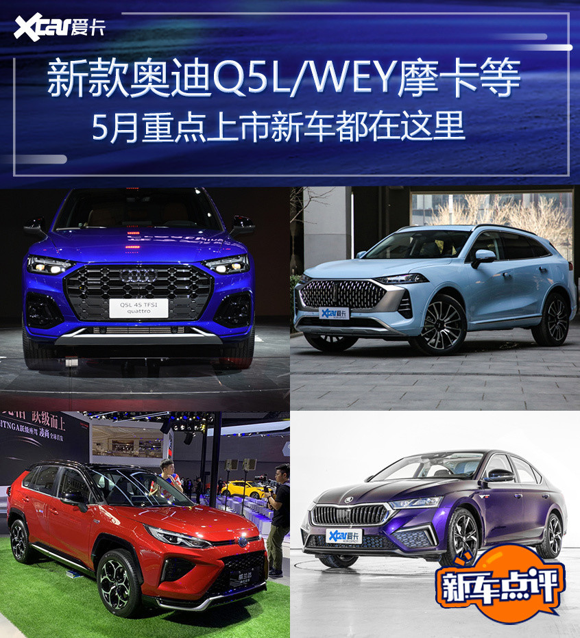在一阵”吐槽“声中,五一长假来到我们身边,相信很多人早已经计划外出旅行度过这个长假。不过肯定也会有很多人在五一长假去挑选自己青睐已久的爱车。除了目前在售的众多车型外,5月份还有哪些新车将要来到我们身边呢?今天的文章我们就来给大家详细介绍一下5月会有哪些重磅新车上市。5月1日已经率先有一款新车上市,它就是广汽传祺M6 PRO,而在接下来的时间,新款奥迪Q5L、WEY摩卡、威兰达插电混动版等关注度非常高的车型也将在5月上市。闲话不多说,下面我们就来详细看看这些新车吧! 车型:新款奥迪Q5L 上市时间:5月 在今年上海车展上,新款奥迪Q5L正式发布。作为中期改款车型,新款奥迪Q5L融入了新家族式设计元素,并继续搭载2.0T高低功率版本发动机。 造型方面,新款奥迪Q5L延续了海外版车型的造型设计,采用了最新家族式设计语言,八边形的进气格栅使前脸看上去更加扁平化,此外新车的大灯造型也进行了调整,采用了“箭形”的设计。并提供了S line套件和Advanced line套件,主打运动的S line套件前脸采用了蜂窝状的进气格栅设计。 尾部方面,新车整体设计变化不大,主要是采用了全新的OLED尾灯,并且一条装饰条将两个尾灯相连,进一步营造出贯穿式的效果。 动力系统部分,新款奥迪Q5L将搭载2.0T汽油发动机,继续提供40 TFSI和45 TFSI两个动力级别,最大功率分别为150kW(204马力)和195kW(265马力),最大扭矩分别为320Nm和370Nm,均匹配12V轻混系统。 车型:威兰达插电混动版 上市时间:5月 在今年上海车展上广汽丰田官方宣布,广汽丰田威兰达高性能版(插电混动版)将于5月正式上市。新车整体设计基本延续普通版车型,只是外观细节不同。动力方面,新车搭载一套插电混动系统,百公里综合油耗最低仅为1.1L。 整体设计方面,威兰达插混版外观与内饰均与在售车型基本一致,只是在一些细节上有所不同,比如新车采用了蓝色LOGO,并增加了充电接口以及混动版特殊标识等。 动力方面,威兰达高性能版搭载2.5L自然吸气发动机与电动机组成的混动系统,综合最大功率225kW(306马力),纯电续航可达63公里,百公里加速仅需6.6秒。此前报道,该车百公里综合油耗最低仅为1.1L。 新款奥迪Q5L/威兰达PHEV 车型:领克05 PHEV 上市时间:5月5日 日前我们从相关渠道获悉,领克05 PHEV将于5月5日正式上市。新车整体设计基本与燃油版车型保持一致,最大的亮点是采用了插电混动系统,纯电续航可达81公里。 领克05 PHEV的外观与燃油版车基本保持一致,进气格栅、外后视镜、后扩散器及侧窗位置的饰条提供多种颜色供消费者选择,还有多种轮圈样式。车身尺寸方面,新车的长、宽、高分别为4592/1879/1628mm,轴距达到2734mm。 领克05 PHEV将采用1.5T涡轮增压三缸发动机与电动机相结合的动力总成,并配别17.72kWh三元锂电池组,发动机的最大功率为132kW(180马力),百公里综合油耗为5.2L,纯电续航里程可达81公里。 车型:WEY摩卡 上市时间:5月 预售区间:17.98-22.08万元 在2021上海车展上,WEY摩卡正式公布预售价,区间为17.98-22.08万元。新车采用最新的家族设计,基于“科技向上向美”的全新设计语言,内饰汇聚了多领域思路,呈现出设计与科技共生愉悦之感。动力方面,WEY摩卡提供燃油版本以及插电式混动版本。据悉,新车将于5月正式上市。 外观方面,WEY摩卡采用了最新的家族设计,六边形的进气格栅采用了全新锁子甲风格,搭配两侧造型狭长的大灯组,WEY摩卡的前包围采用了镀铬装饰,这样的设计使前脸看起来更加运动。据了解,WEY摩卡将根据配置的不同提供19英寸和20英寸的轮圈可选。值得一提的是,WEY摩卡采用了隐藏式的门把手。 尾部方面,WEY摩卡的尾部采用了传统的造型设计,尾部设计得圆润大气,看起来更加运动。车身尺寸方面,根据申报信息中显示,WEY 摩卡的长宽高分别为4875/1960/1690mm,轴距为2915mm。 具体来看,摩卡的中控采用天穹智慧造型,贯穿中央的线条将整体分为上下两层,打造一种无限延伸的视觉效果。细节上,摩卡使用大量亲肌材质,拥有冰山蓝,银河白,科技灰,深邃夜色黑,双色或纯色等搭配方案,满足不同用户的定制化需求。同时,摩卡还拥有晶钻挡把这一特别设计。 在配置上,摩卡的“咖啡智能”座舱同时配备着主仪表屏、AR-HUD、中控显示屏和触控面板屏,可实现四屏联动功能。智能驾驶领域方面,摩卡配备了高速驾驶辅助(HWA)、高速自动领航辅助驾驶(NOH)、高速公路领航驾驶系统(HWP)功能,可支持避障变道、多车变道、进出匝道、过收费站、智慧躲闪等复杂道路场景的智能驾驶。 动力方面,WEY摩卡会提供普通燃油版本以及插电式混动版本,其中燃油版搭载的是E20N 2.0T发动机,该发动机采用米勒循环设计,最大功率为157kW(213马力)。 领克05 PHEV/WEY摩卡 车型:全新明锐PRO 上市时间:5月 预售区间:13.89-15.99万元 4月28日,上汽斯柯达全新明锐PRO正式开启预售,预售价格为13.89-15.99万元。据悉,全新明锐PRO与第八代高尔夫相同,基于大众MQB EVO平台打造而来,内外进行了全面升级,新车将于5月上市发售。 据悉,全新明锐PRO由上汽大众斯柯达造型团队与捷克斯柯达造型团队共同打造,造型与海外版车型基本保持一致,全新明锐PRO采用了最新家族式设计语言,整车线条棱角分明。宽大的进气格栅搭配犀利的前大灯组以及贯穿式下格栅,进一步提升了前脸的辨识度。相比上一代车型,新车显得时尚动感了许多。 尾部方面,采用LED光源的尾灯