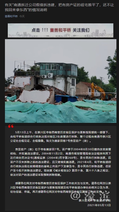南通拆迁公司假借拆违建,把有房产证的祖宅推平了,还不让我回来拿东西! |