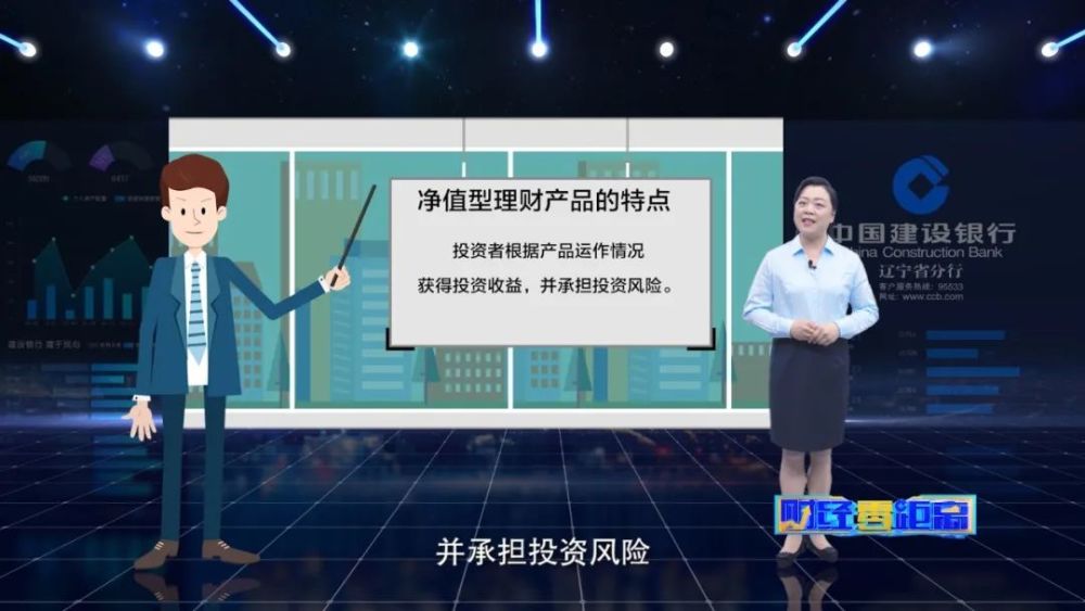 金融服务回归初心,知识宣教赋能社会,建设银行辽宁省分行与辽宁卫视携手打造大型公益类金融消保宣教节目《财经零距离》。 第十二期 走进理财产品 理财,对于我们来说并不陌生。但是,你真的了解理财吗?理财产品的类型应该如何区分,我们又该如何选择适合自己的理财产品呢?本期《财经零距离》带您探索答案。 理财产品大家并不陌生,大家在进行家庭资产配置时,很多人都会选择理财产品来帮助自己的资产保值增值。但大家真的了解理财产品吗?能够区分理财产品的类型吗? 今天,就带大家走进理财产品。 理财产品是指商业银行或正规金融机构运用专业的投资能力,按照既定的投资策略,将募集到的资金根据产品合同约定投入相关金融市场及购买相关金融产品,获得投资收益后,根据合同约定分配给投资人的一类产品。 什么是净值型理财产品? 净值型理财产品,指投资者按照产品单位净值参与或退出理财产品投资运作的理财产品。 净值型理财产品具有以下特点: (1)按单位净值形式展示,定期对产品单位净值进行信息披露; (2)不设预期收益率,具有非保本浮动收益的特征; (3)产品单位净值的生成应符合企业会计准则规定,及时反映基础金融资产的收益和风险; (4)投资者实际兑付的本金收益与产品实际投资收益或亏损相关,与产品收取的费用相关; (5)净值型理财产品是未来理财产品发展的方向,体现了资产管理代客理财的本源; (6)投资者根据产品运作情况获得投资收益,并承担投资风险; (7)净值型产品分4大类,即固定收益类、权益类、商品及金融衍生品类、混合类,我们最常见的净值型产品类型是固定收益类。 在选择净值型理财产品时,我们应该注意什么? (1)做好风险测评,选择与自己风险评级相匹配的理财产品。 (2)仔细阅读产品的说明书、客户权益须知等文件。 (3)留意重点要素,即风险等级、产品类型、投资范围、业绩报酬、产品期限和结构等。 总结起来,理财产品的净值化势在必行,未来大家在购买理财产品的时候,一定要明白理财业绩比较基准的含义,挑选购买风险适宜的理财产品,在进行产品购买前,一定要仔细阅读理财产品的产品说明书等重要材料文件,做到清清楚楚、明明白白购买理财产品。最后提示大家,理财非存款,投资有风险,投资需谨慎。 理财产品种类多,类型丰富别选错; 风险匹配最重要,谨慎投资要记牢!