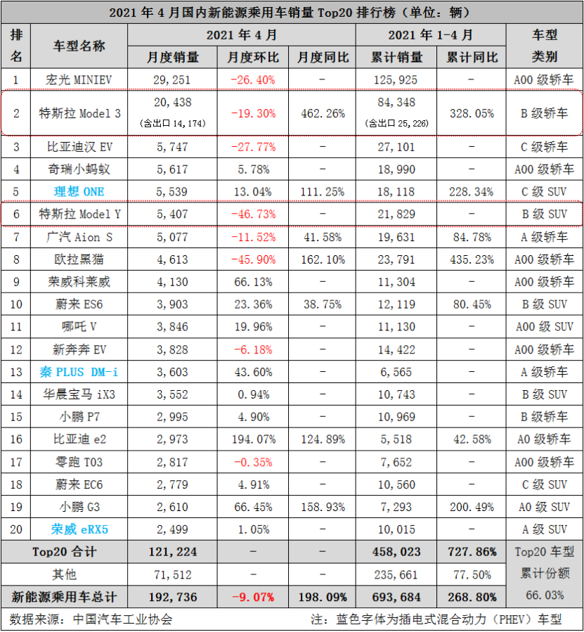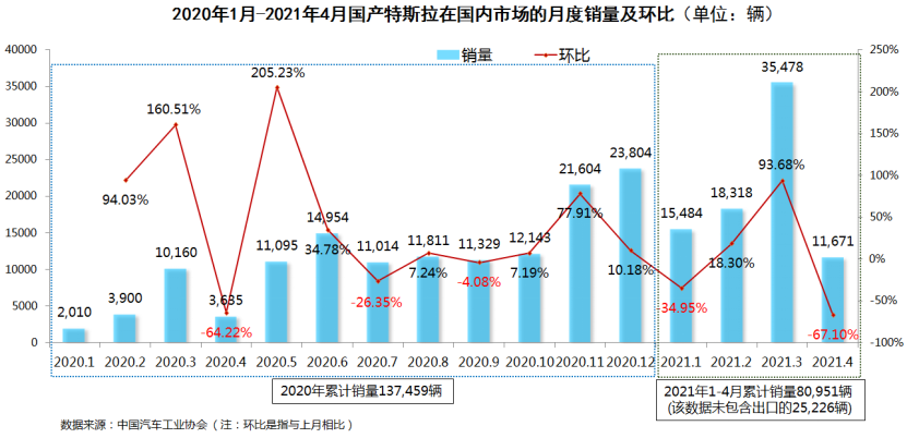 上海车展“刹车门”维权事件所引发的热潮还没有褪去,2021年4月份销量成绩一出,特斯拉又成了众矢之的。因为刨去出口量,特斯拉在国内市场上的销量实际仅为1.17万辆,环比上月大幅下降67.10%,这也是特斯拉自国产以来在国内销量环降幅度最大的一个月。 4月环比暴跌67%,抽丝剥茧起底特斯拉国内销量 据中国汽车工业协会发布的最新统计数据显示,2021年4月,特斯拉销量为25,845辆,其中包含了14,174辆Model 3的海外出口量。如果减去出口,在国内市场实际上Model 3仅销售了6,264辆,Model Y销售了5,407辆,两者加起来一共销售了11,671辆。 而中汽协发布的前三个月特斯拉销量是不含出口的,所以均为国内市场销量,如此环比算下来,4月份特斯拉比上月(3月为35,478辆)暴跌67.10%,其中Model 3环降75.27%,Model Y环降46.73%。 特斯拉国产的首款车型Model 3是于2020年1月7日正式在国内开启交付的,如果把特斯拉自国内上市以来的月度销量拉个清单,我们可以看到,其在2021年4月份的跌幅是特斯拉16个月以来最大的一次月度环比降幅,比上月下降近七成。 而分车型来看,更可以说是“惨不忍睹”。4月份在国内仅销6,264辆的Model 3可以说是创下了近一年来的新低,而今年初刚上市的Model Y销售的5,407辆也比上月“腰斩”近一半。这让一直高歌猛进的特斯拉来了个没有失灵的“急刹车”。 由于特斯拉的产能放量及上市交付有一个循序渐进的过程,因此其月度环比存在明显的波动性特征。在上市以来的16个月里,只有上市初期的三个月是低于万辆的,而其他13个月则均超过万辆,从1万辆到3.5万辆不等。而2021年3月份是销量最高的一个月份,如此高基数也是导致4月环比下跌的重要原因之一。 维权?停产?特斯拉在华销量缘何“急刹车” 目前,对于特斯拉国内销量4月份环比大幅下降的现象,大家众说纷纭。那么,究竟是什么原因造成了特斯拉国内销量大幅下降呢? 首先,大家自然而然地想到了上海车展维权事件,让站在车顶维权的河南女车主这么一闹,全国人民都知道特斯拉“刹车失灵”了,甚至在维权正盛期间还发生了好几起特斯拉失控事件,更有甚者其他开特斯拉的车主被全网群嘲……相信不少特斯拉的潜在车主会因为此事而打退堂鼓吧。 当然,由于维权事件的发酵是发生在4月中下旬,可能效果显现会滞后一些。但如果5月份特斯拉销量还是这么一蹶不振的话,则更有理由坐实了“维权后遗症”的存在。至于真相如何,我们只能走着瞧。 更加火上浇油的是,广东省消费者委员会在5月11日向广大消费者发出“新能源汽车消费提示”,其中特别提到“新能源汽车的智能辅助驾驶等与燃油车在驾驶和操作上会有一定的区别”,提醒消费者在购买新能源汽车时应慎重选择,以减少和避免消费纠纷的发生。这也令人情不自禁地联想到了特斯拉的一系列失控事件及其所引发的维权纠纷。 而来自特斯拉官方的解释显示,因上海超级工厂Model Y生产线在4月份停产两周升级产线设备,对销量的波动产生了影响。 此外,乘联会秘书长崔东树的说法是,特斯拉4月在华销量出现下降和车展事件的关联并不大,而是由市场季度销售特征导致的。他表示:“4月是第二季度首月,通常处在厂家订单和产量的调配期,从市场规律来看,交付量也会出现下降。加上特斯拉还要继续出口欧洲,在华数据下降也不足为奇。” 所以,特斯拉4月在华销量的下跌,到底是需求锐减,还是供货不足,抑或是战略调整,优先满足出口订单,目前尚不得而知。 但与此同时,也有业内人士认为,在上海车展维权事件的进一步发酵、品牌口碑下跌、国际形势紧张、竞品车型增多、频繁调价等多重因素影响下,预计特斯拉5月份及未来的市场表现将会非常“曲折”。 新能源汽车市场群雄逐鹿,特斯拉霸主地位面临挑战 近一年以来,五菱宏光MINIEV和特斯拉Model 3几乎包揽了新能源汽车市场上的冠亚军,两款车型轮流坐庄,其他车型难以超越。2021年4月销量排行榜亦是如此。 但事实上,上述两款车型分别处于高低市场的两端,定位于不同的消费群体,并不存在竞争关系,无法通过数量多少进行简单的对比。 而真正威胁到特斯拉市场地位的是比亚迪汉、理想ONE、蔚来ES6等中型及以上级别车型。从4月份的销量榜单可以看出,特斯拉Model 3的20,438辆减去14,174辆出口,国内实销为6,264辆,尽管仍然排名第二,但与排名第三位和第五位的比亚迪汉EV、理想ONE差距已经不大,后两者分别销售了5,747辆和5,539辆,仅与Model 3相差数百辆。 而特斯拉Model Y则从上月的第三名滑落至第六位,4月销量为5,407辆,仅领先蔚来ES6和宝马iX3一千余辆。 从增速来看,Model 3和Model Y在4月份环比分别下滑75.27%(不含出口)和46.73%,形成断崖市下滑;而与之形成鲜明对比的是,理想ONE、蔚来ES6则分别保持了两位数的增长,仍处于上升态势,后劲十足。 小结 竞争范围内的车型销量此消彼长,是市场发展的定律。特斯拉少卖了几千辆,而其他竞品车型则必然多卖了三五斗,以弥补同类型消费者的需求。尽管特斯拉的暴跌众说纷纭,但有一点可以明确的是,特斯拉被拉下“神坛”只是时间问题,本来国内消费者素来就有跟风消费的习惯,特斯拉负面消息一出,难保不被竞争对手挖了墙角。