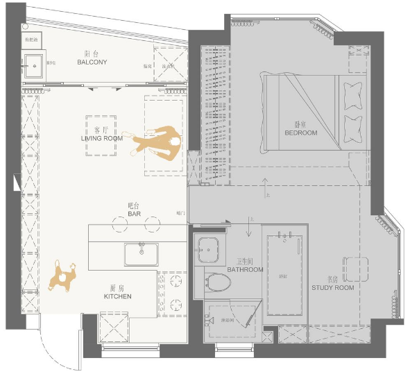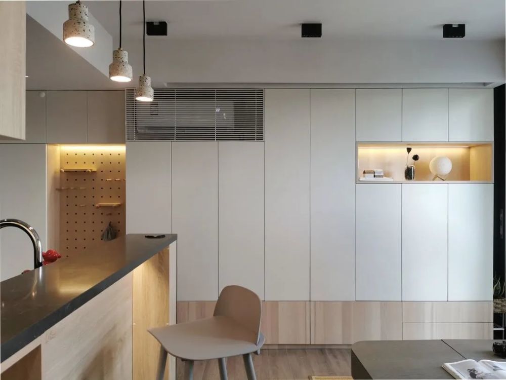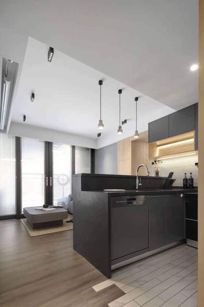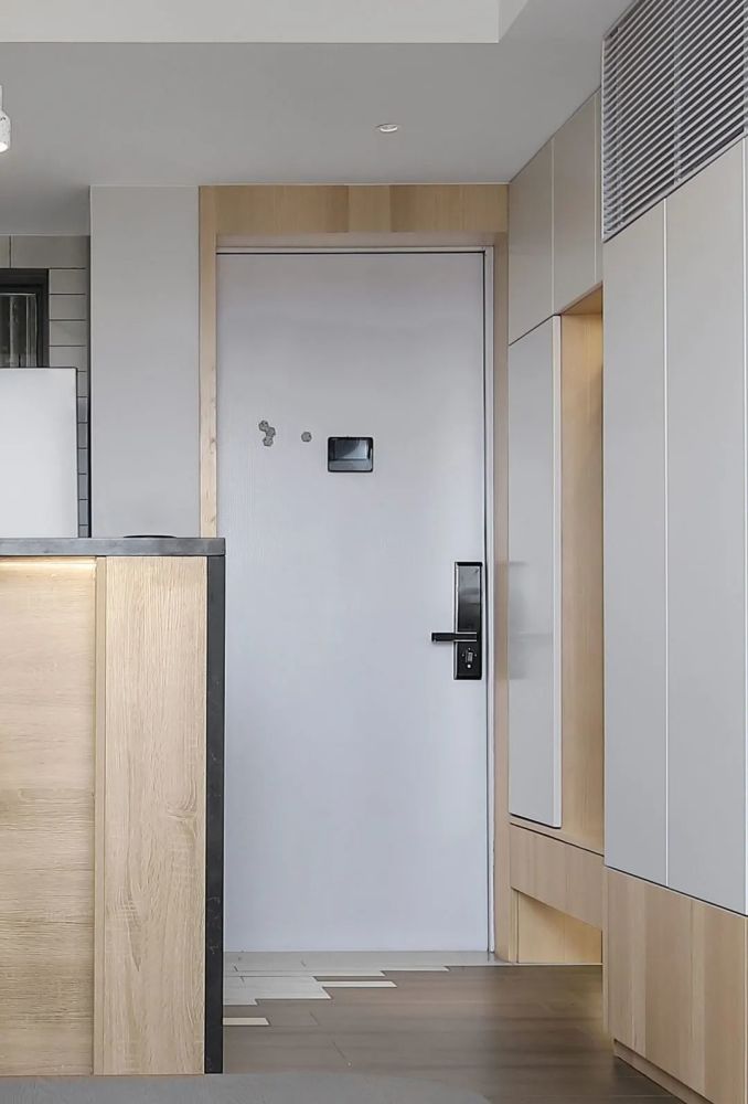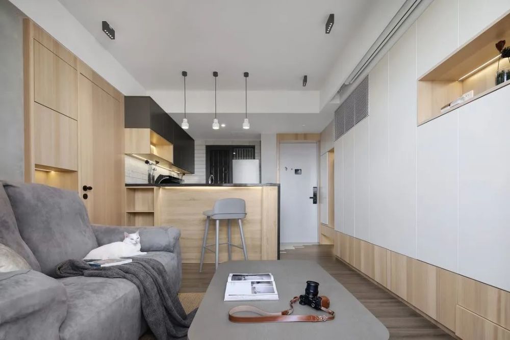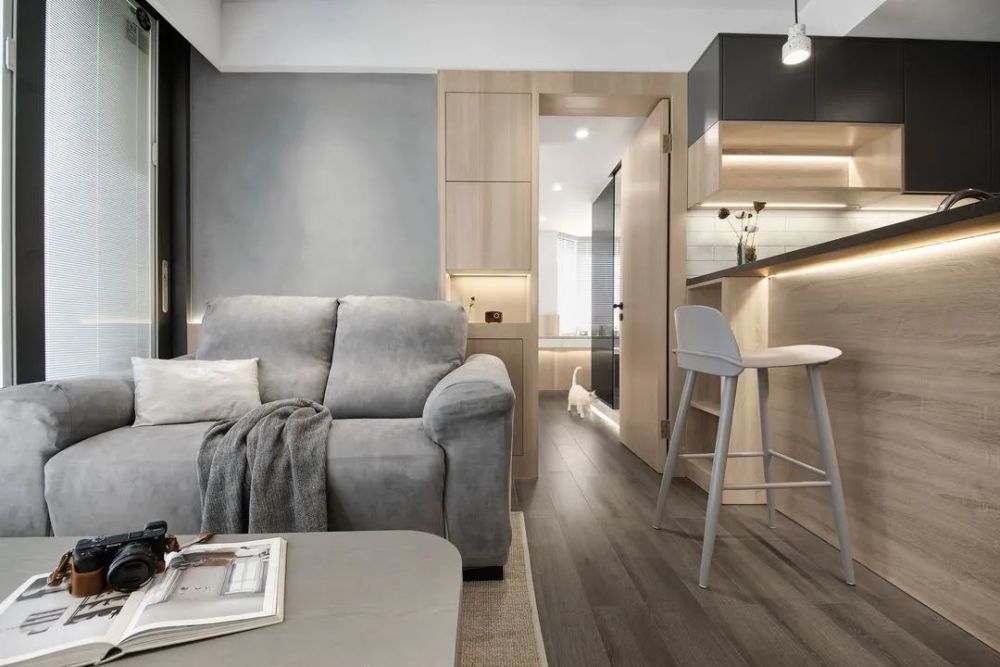 小户型真是让人又爱又恨,爱的是经济压力小有了喘息的机会,恨的是空间小装修很头疼。在有限的空间里,对于装修风格和家具选择,都有很大的局限性。但是设计合理的话,小户型也可以有大作为。接下来分享一套49㎡小户型案例,合理的设计榨干每一平空间,各种功能照样实现,全屋挑不出毛病。 原户型结构,49㎡的面积,户型相对方正,空间改造灵活性大。要做到小巧精致,满足大量收纳需求。 装修布置图,对空间进行重组,实现公共区域和私密区。不同的空间呈现不同的效果,满足大量的收纳需求,同时营造出生活情境。 入户进门做了一些比例调整,右侧靠墙设计一整排收纳柜,提升居家收纳能力。考虑到进门的特殊性,地面采用瓷砖和木地板渐变设计,简洁美观方便清洁。组合式鞋柜设计非巧妙,集换鞋、收纳、挂衣一体,对小户型太合适不过了。 挂衣区采用洞洞板设计,顶部暗藏灯带日常更便捷。放弃电视安装,收纳柜由进门延伸到客厅。部分开放式设计,打破单调感丰富立面造型。 半隔断设计,保持空间通透,各自功能区独立。白色为主调提升室内亮度,灰色和原木色辅助,自然素雅整体简约时尚。 空间重新设计组合,实现公共区域和私密区,通过暗门设计很好的分隔开。沙发和背景墙保持色调一致,提升整体质感。沙发墙延伸做隔断柜,增加收纳避免直接砌墙。 开放式厨房设计,保持空间通透开阔,同时增加互动体验。地砖和木地板渐变设计,保证厨房使用便利。 集成灶美观,吸附油烟效果好。手扫感应灯方便开关,同时提高台面亮度。 吧台与橱柜结合设计,整体效果不错很有时尚感, 方便交流也不忘居家收纳。 卧室卫生间,黑色玻璃盒子设计,强化区域界线,半透明也提供视线交流的可能性,同时也让卫生间增添了一抹神秘感和情调。 卫生间改造后足有5㎡,四个功能合理分配,满足日常生活需求。 马赛克对于这样的龙头安装要求非常高,需要提前规划好尺寸,保证最后装修严丝合缝。 卧室不买床,设计台阶式榻榻米,兼顾美观和收纳。 增加线条灯带,暖色的光源,营造温馨氛围。左侧一整排的收纳,不用担心衣物收纳问题。 书房设计一体式写字台,一直延伸与床头柜连接,保持卧室与书房的统一协调。阳光透过百叶帘,为书房增添了一丝丝温暖。