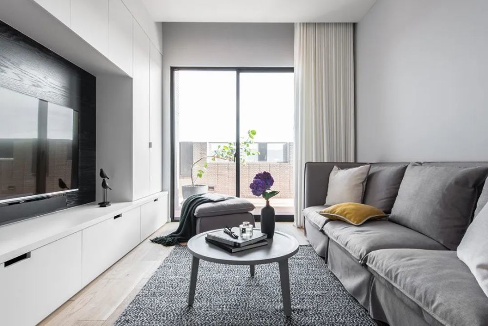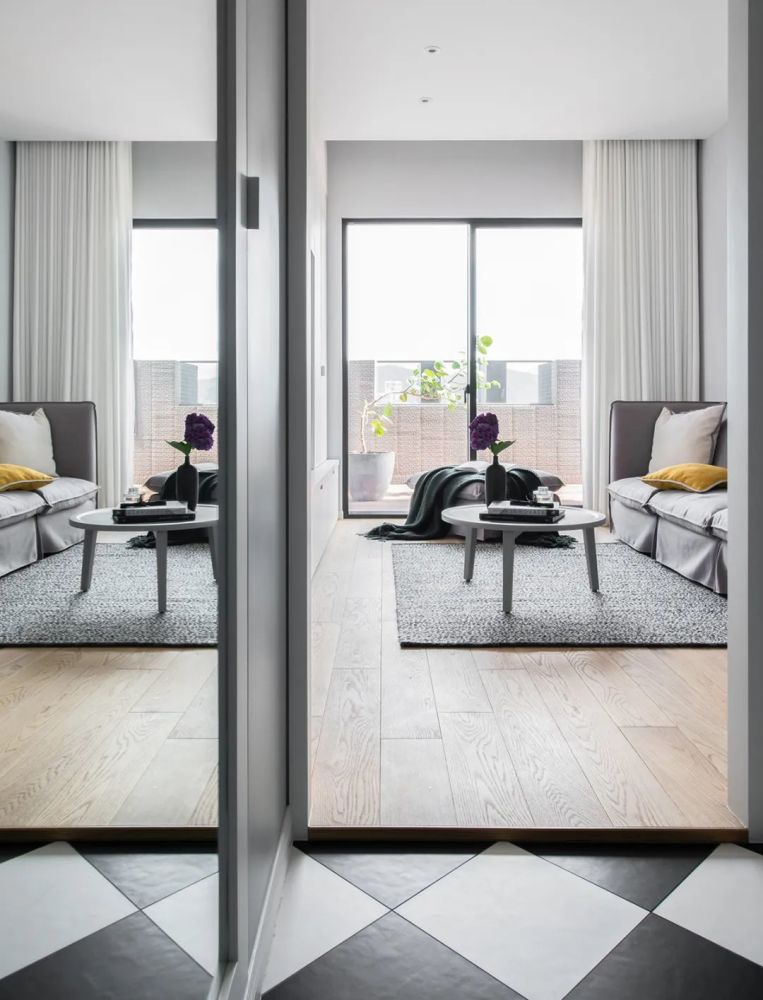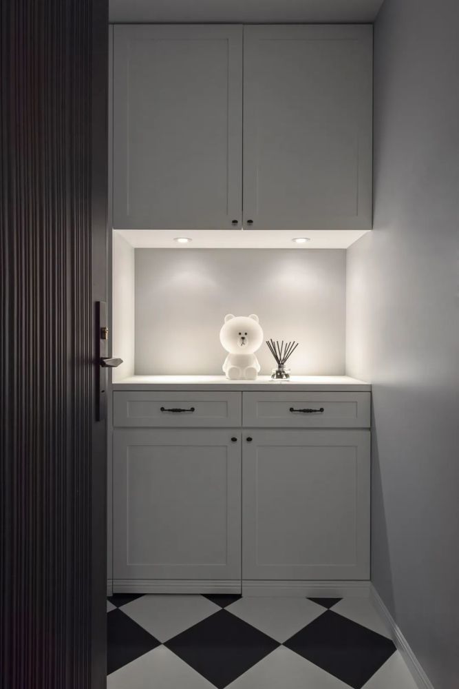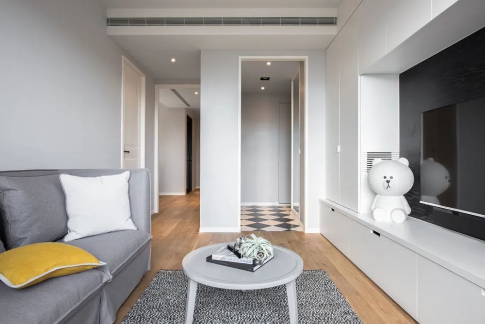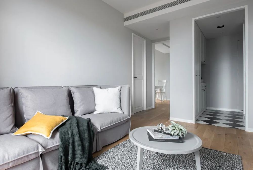 今天小桔要介绍的美家案例,是来自青岛的简约美式风小家,全屋装完后,仅仅有60平米的小房子,有了百平居室的居住体验! 亮点: 1.设计师抱着“用尽房子每一寸面积”的态度,把客厅、餐厅、厨房、阳台全部打通,保持了空气的绝对新鲜。 2.各个角落都有做特别的设计,处处都有收纳区,过来做客的邻居全部都称赞! 户型 房屋坐标:山东青岛 套内面积:60㎡ 房屋户型:1房1厅1卫 装修风格:简约美式 家庭人口:90后白领女性 装修全包报价:16万 屋主需求: 1.喜欢美式风格,家具设计想要简约一些 2.房子较小,所以收纳区域越多越好 3.空间要有明确划分,整体设计要显得年轻有活力 房屋特点:原始房型本身就很周正,进门左手边就能看到客厅,除了卫生间是暗卫,其余房间都有窗户。 玄关 入户玄关采光条件不好,设计师选择了宛若黑白棋盘的地砖样式,玄关柜选择了定制一个到顶的玄关柜,经典黑白色调交错呈现,勾绘出从容明亮的第一印象。 进入大门后,嵌入式的玄关柜将功能区划分出来,一半作为鞋柜收纳,另一半作为杂物收纳,小熊感应灯是一个亮点。 客厅 家居设计要注意:要保持家里好的采光,装修时就不能留太多隔断。设计师选择的客厅、餐厅、厨房、阳台一体化的设计,让整屋空间的采光条件变得更好,有效提升居住的舒适感。 客厅选择了定制简约风的电视柜,中间部分采用黑木色电视框架,以色块方式与周遭柜体形成鲜明黑白对比,于此呼应玄关区的黑白棋盘地砖。 软装选择搭配优雅的美式沙发,加上棉布毛毯,柔化刚性线条、烘托迷人优柔气质。客厅门打开即可通向阳台,视野十分开阔。 餐厅 餐厅比较窄,所以只在中间摆放着一张独具特色的餐桌,揉合了曲度的美式桌脚,加上具有手作垂直线条的断面,创造独有冲突美感。 餐厅的壁面缀以具缤纷色泽的格子柜装饰,几何造型加上珍珠吊兰的衬托,塑造温馨的用餐情境。 卧室 基于屋主希望拥有明确的格局划分,透过一道墙将卧室和阳台区分,勾勒出清晰流畅的动线,卧室整体风格是灰色调,优雅又大气。 床头柜的位置用办公桌椅代替,卧室也具有书房的功能,有时需要可以在这里办公,做到了一屋两用,节省了极大空间。 卧室虽然小,但是女主人对衣物存放有较高需求,所以设计师在卧室加入独立衣帽间。 到顶的衣柜满足收纳机能,推开衣帽间的门,简约清新的半开放式衣柜随即映现,用全身镜面造就连续性的延伸效果。 厨房 独居的女主人对做饭的需求不高,所以厨房设计就实用简单。一字型橱柜保持了空间干净美观,后方隔墙顺势延伸将厨房与餐厅串联在一起,定制上下收纳橱柜,最大化利用了空间。 卫生间 女主人对于流行元素相当敏感,设计师决定采用历久不衰的地铁砖、马赛克砖,呈现合乎当今设计潮流却永不退流行的沐浴氛围。 卫生间的色调设计延续自玄关就采用的经典黑白色调对比,塑造和谐一致的视觉感受,收纳功能则由隐藏的镜柜来承担。 ( W- d; h8 G4 A- r% |