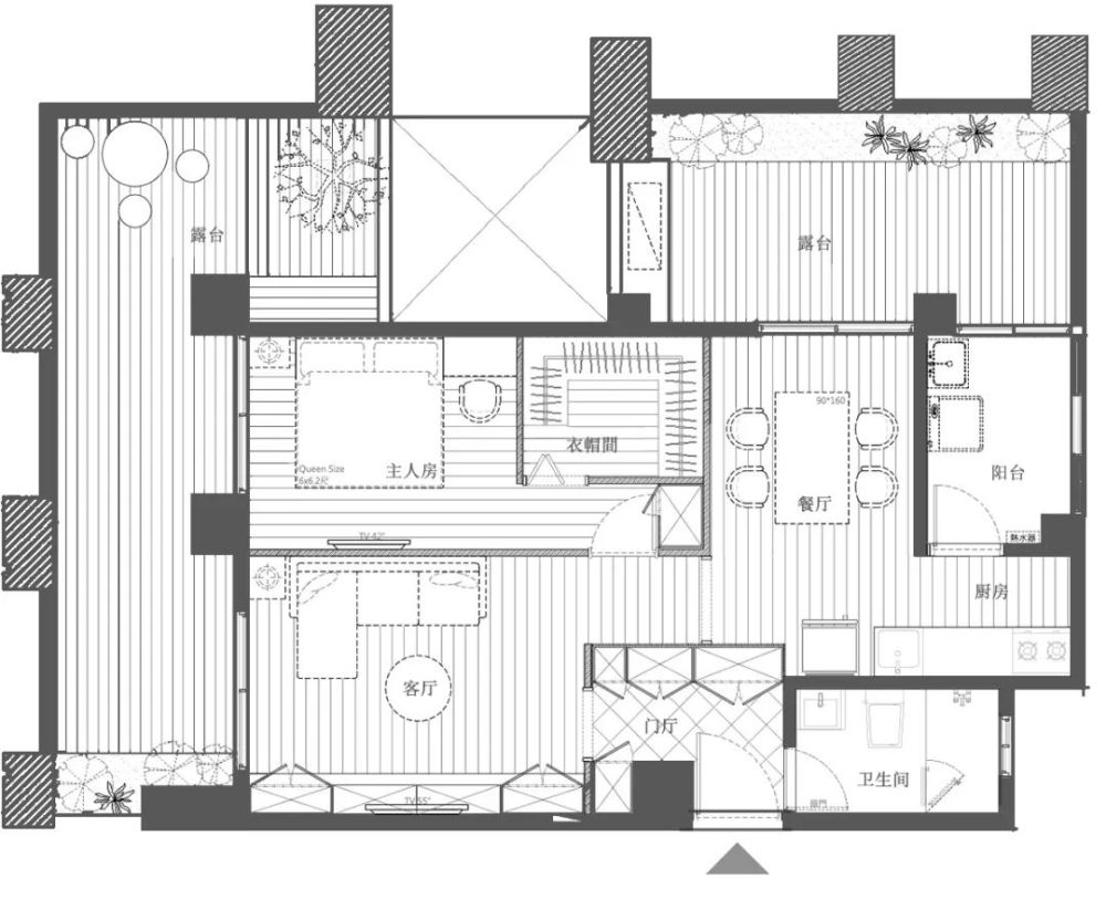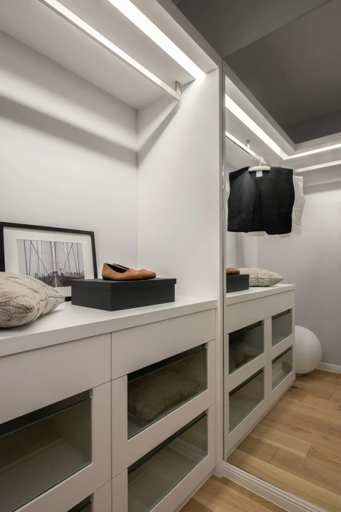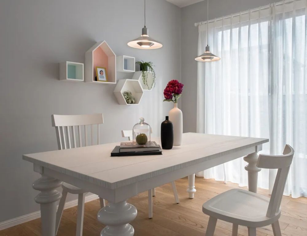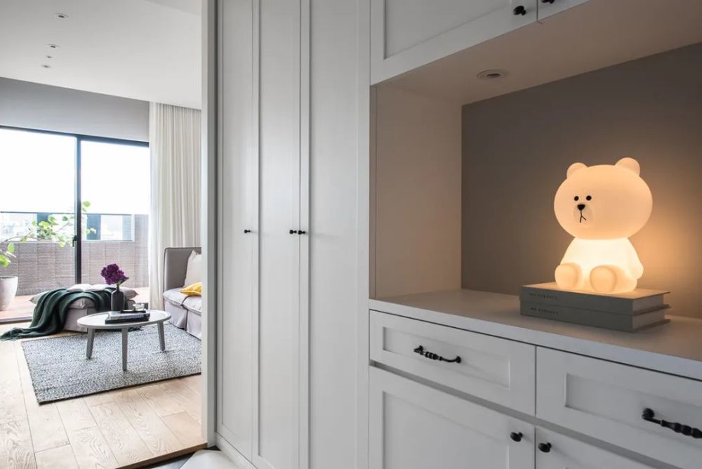 今天小桔要介绍的美家案例,是来自青岛的简约美式风小家,全屋装完后,仅仅有60平米的小房子,有了百平居室的居住体验! 亮点: 1.设计师抱着“用尽房子每一寸面积”的态度,把客厅、餐厅、厨房、阳台全部打通,保持了空气的绝对新鲜。 2.各个角落都有做特别的设计,处处都有收纳区,过来做客的邻居全部都称赞! 户型 房屋坐标:山东青岛 套内面积:60㎡ 房屋户型:1房1厅1卫 装修风格:简约美式 家庭人口:90后白领女性 装修全包报价:16万 屋主需求: 1.喜欢美式风格,家具设计想要简约一些 2.房子较小,所以收纳区域越多越好 3.空间要有明确划分,整体设计要显得年轻有活力 房屋特点:原始房型本身就很周正,进门左手边就能看到客厅,除了卫生间是暗卫,其余房间都有窗户。 玄关 入户玄关采光条件不好,设计师选择了宛若黑白棋盘的地砖样式,玄关柜选择了定制一个到顶的玄关柜,经典黑白色调交错呈现,勾绘出从容明亮的第一印象。 进入大门后,嵌入式的玄关柜将功能区划分出来,一半作为鞋柜收纳,另一半作为杂物收纳,小熊感应灯是一个亮点。 客厅 家居设计要注意:要保持家里好的采光,装修时就不能留太多隔断。设计师选择的客厅、餐厅、厨房、阳台一体化的设计,让整屋空间的采光条件变得更好,有效提升居住的舒适感。 客厅选择了定制简约风的电视柜,中间部分采用黑木色电视框架,以色块方式与周遭柜体形成鲜明黑白对比,于此呼应玄关区的黑白棋盘地砖。 软装选择搭配优雅的美式沙发,加上棉布毛毯,柔化刚性线条、烘托迷人优柔气质。客厅门打开即可通向阳台,视野十分开阔。 餐厅 餐厅比较窄,所以只在中间摆放着一张独具特色的餐桌,揉合了曲度的美式桌脚,加上具有手作垂直线条的断面,创造独有冲突美感。 餐厅的壁面缀以具缤纷色泽的格子柜装饰,几何造型加上珍珠吊兰的衬托,塑造温馨的用餐情境。 卧室 基于屋主希望拥有明确的格局划分,透过一道墙将卧室和阳台区分,勾勒出清晰流畅的动线,卧室整体风格是灰色调,优雅又大气。 床头柜的位置用办公桌椅代替,卧室也具有书房的功能,有时需要可以在这里办公,做到了一屋两用,节省了极大空间。 卧室虽然小,但是女主人对衣物存放有较高需求,所以设计师在卧室加入独立衣帽间。 到顶的衣柜满足收纳机能,推开衣帽间的门,简约清新的半开放式衣柜随即映现,用全身镜面造就连续性的延伸效果。 厨房 独居的女主人对做饭的需求不高,所以厨房设计就实用简单。一字型橱柜保持了空间干净美观,后方隔墙顺势延伸将厨房与餐厅串联在一起,定制上下收纳橱柜,最大化利用了空间。 卫生间 女主人对于流行元素相当敏感,设计师决定采用历久不衰的地铁砖、马赛克砖,呈现合乎当今设计潮流却永不退流行的沐浴氛围。 卫生间的色调设计延续自玄关就采用的经典黑白色调对比,塑造和谐一致的视觉感受,收纳功能则由隐藏的镜柜来承担。 ( W- d; h8 G4 A- r% |