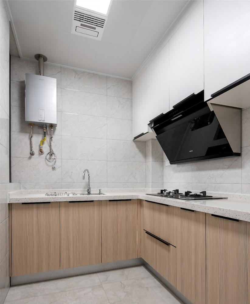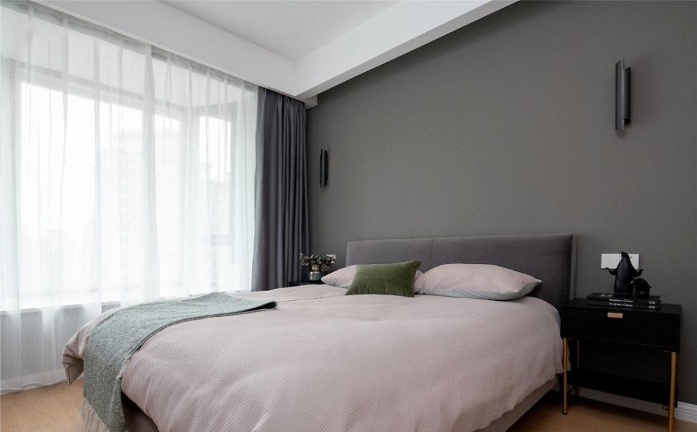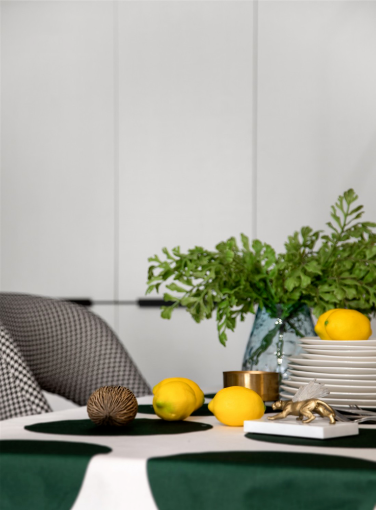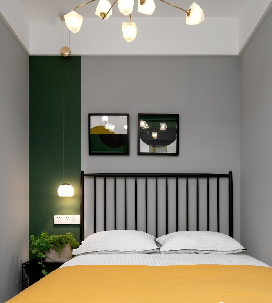 ” 设计理念 这是一套北欧风格的装修案例,家对于屋主而言,不仅仅只是一个住所,更是可以燃烧生活热情的地方,因此屋主期望格外注重“氛围感”,期望设计师可以多加把控。希望这套装修案例能给大家带来一些灵感。 ” 客厅 ▲ 当高级优雅的墨绿遇见温润的原木,是专属于自然的味道。 ▲ 亮黄色冰箱置于客厅也不会觉得突兀,与整体氛围融合的刚刚好。 ▲ 无论是背景色还是绿植,也在无形中强化视觉舒适度。 ▲ 或许你会觉得客厅配色略显张扬,但是另一侧电视背景墙的浅色却让色调得以沉淀。 ▲ 柔化空间氛围,也让空间主人的休闲时刻更为安逸。 餐厅 ▲ 餐厅,收纳柜占据了整面墙却因其浅色调不会给屋主压抑感,细腿餐桌椅搭配不同质感及色彩也可满足空间主人的时尚追求。 ▲ 桌布的配色都与墨绿主色调相呼应,配合整个餐厅呈现出的优雅气质,也是屋主所中意的。 厨房 ▲ 主打实用的厨房并没有强加装饰,石材和原木的结合也让空间布满自然简约气息。 主卧 ▲ 与客厅的活泼不同,屋主期望个人空间还是低调为主,因此并没有选择明艳的色彩,软装也遵循极简风,与整个设计形成反差。 儿童房 ▲ 孩子的房间,设计师则提取了客厅的墨绿及亮黄做搭配。 ▲ 天真烂漫的氛围,对于孩子的成长来说再好不过。 w& M5 t z' G9 B% y7 @9 p1 f