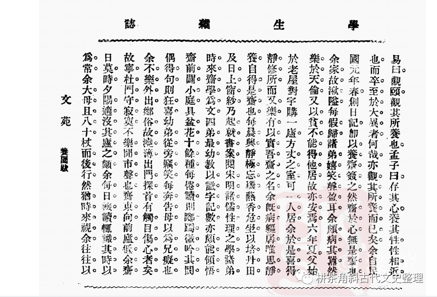角斜名人缪金源最早的一篇文章“养斋记”(1918年南通中学四年级) |