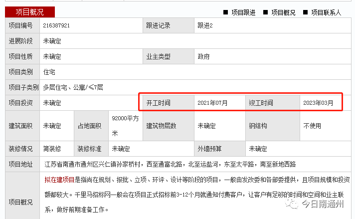 今天,千里马招标网发布了兴仁镇通富佳苑四期安置房工程的项目进度,根据项目跟进计划表,兴仁镇通富佳苑四期安置房计划开工时间为2021年7月,竣工时间为2023年3月,详见下图: