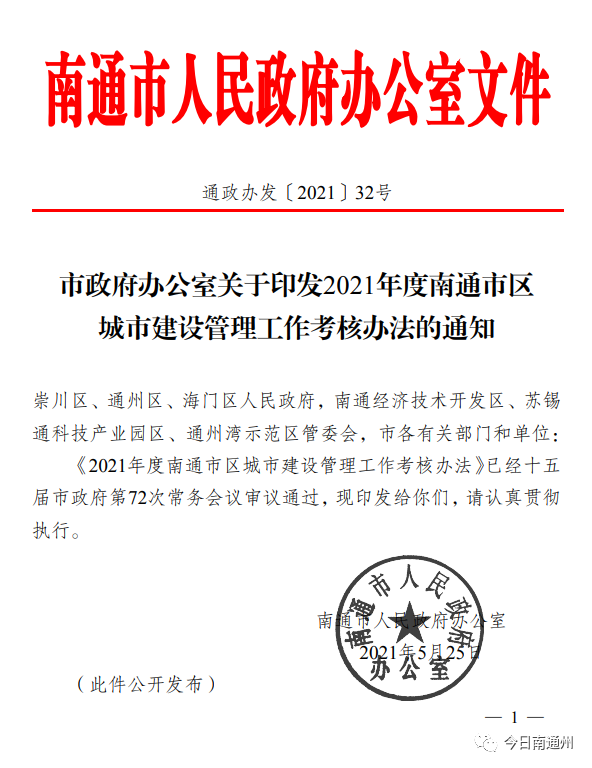 5月28日,市政府办公室发布了2021年度 南通市区城市建设管理工作考核办法,考核内容包括城市建设征收与搬迁工作考核、市考核区项目进 度考核以及市区住宅用地出让和入库考核。 其中涉及到通州区的,包含2021年城市建设征收与搬迁考核表和2021年城建交通计划市考核区项目表,具体项目清单如下: