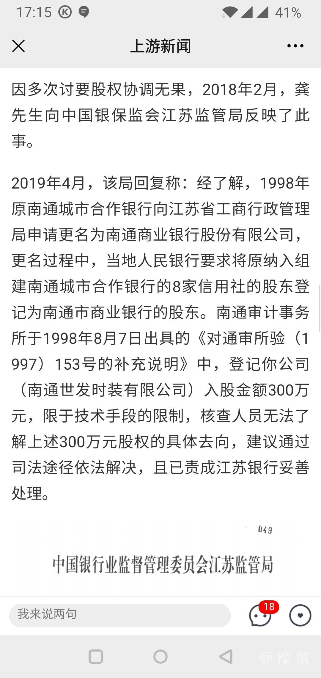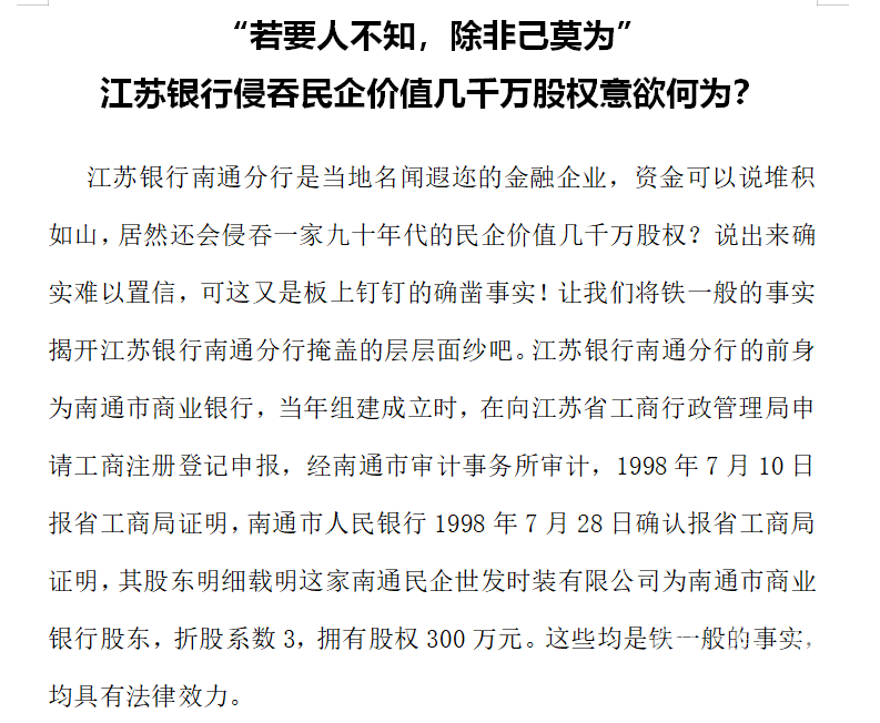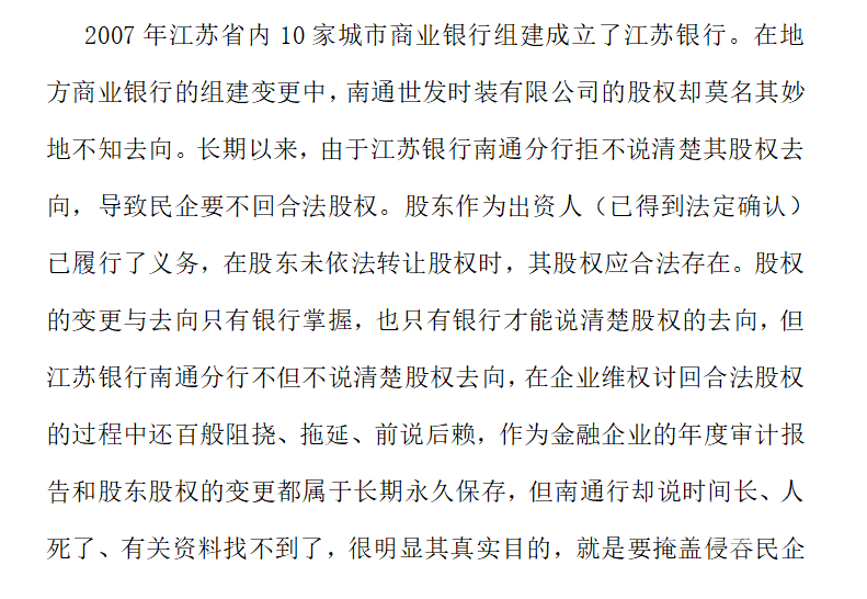 [随便港港] 民企股权居然在江苏银行“消失”,谁信? 必须查出股权去向! 还我企业合法股权! |