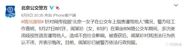 近日,一段北京大妈在公交车上辱骂“臭外地人”的视频火了,引起热议。6月8日晚间,北京市公安局公共交通安全保卫分局发布情况通报称,63岁的闻某因多次谩骂他人,造成不良社会影响,已被警方依法行政拘留。 没有法外之地,虚拟空间都不是,何况公交车上。这位瞧不起外地人、自称“正黄旗”的北京大妈为自己的无知、无理付出了代价,现在她应该清楚了,“多次使用歧视性语言谩骂他人”,这也是一种违法行为,是要受到法律制裁的。 对于这样的结果,很多网友都表示“舒适”。地域黑一向不招人待见,歧视他人更为公众所不容。都什么年代了,还有人以“正黄旗”自居并因此感觉良好、盛气凌人,更让人哭笑不得。 这个大妈代表不了任何群体,她只能代表她自己。她是北京的一个大妈,尽管户口在“二环以里”,但她绝不能与北京大妈这个群体画等号。同样,这个大妈是个63岁的老人,但她代表不了老年人这个群体。 只是,事关公交车上让座这个公共话题,大家都还是非常热衷于探讨一下。近年来,“让是情分,不让是本分”这一论调不断出现,有没有道理,这要视情况而定。看到孕妇或老弱病残,再强调“不让是本分”就不合适。扶助弱小,这是文明的体现。当然,如果对方年纪虽大但生龙活虎,让与不让倒是可以自己做决定。 被拘留了的那位北京大妈有错,错在多次谩骂他人,但就让座这件事本身来说,有网友提出的这个问题值得关注:年轻人是否可以坐在写着“老弱病残孕”的座位上? 在大妈骂人的视频中,拍摄者解释说,大妈称自己身上有残疾,本来别人也是要给她让座的,但还没等让,她刚一上车,就嚷嚷上了。 年轻人坐在“老弱病残孕”座位上,看到大妈上车却没有让,这肯定不妥,如果大妈不是这么急性子,上来就嚷,年轻人及时让出座位来,也不会引起什么纠葛。那么,是大妈不该急性子,还是年轻人本来就不该坐在那个座位上? 之所以有网友会提出这样的问题,是因为在欧洲很多国家,公交车上有专门为老年人设置的座位,即使空着,年轻人也不会去坐。这是事实,无关崇洋媚外。 不过,这种情况是否适用于我们,也值得探讨。中国人口众多,公交车上经常会比较拥挤。这种情况下,如果还要空着几个座位,是否现实?是否会因浪费空间,造成车内更加拥挤? 所以,年轻人坐在“老弱病残孕”座位上不是问题,看到老年人上车了却没有让座才是问题。老年人要求坐在“老弱病残孕”座位上的年轻人让座也不是问题,还没等对方看到自己就开骂才是问题。 在“老弱病残孕”座位面前,不存在“让是情分,不让是本分”。