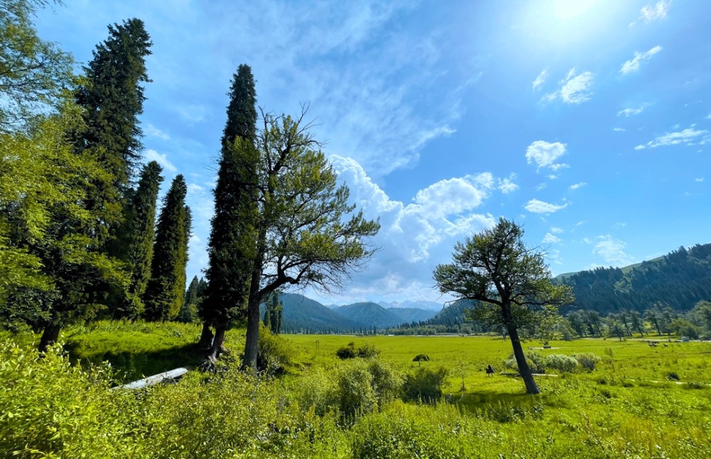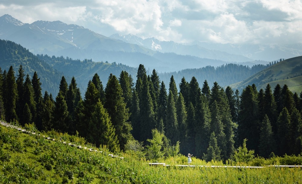 天气炎热,你是不是也和我一样想找个凉快又美丽的地方旅个行,度个假? 位于新疆维吾尔自治区伊犁哈萨克自治州的巩留县就是名副其实的“凉都”, 这里在夏季的时候,白天平均温度只有摄氏25度,夜间平均温度低至摄氏10度,在这里游玩,感觉就像身在一个巨大的空调房里面,非常舒服。 巩留县植被茂盛,负氧离子含量极高,2019年荣获“中国天然氧吧”的称号,在这里呼吸的每一口新鲜空气都让人心旷神怡。 从高空鸟瞰巩留县,其地形就像一只翩翩起舞的彩蝶,因此有“蝶城”之称。 蝶湖 蝶湖位于巩留县东部新城的核心位置,形状像一只翩翩起舞的彩色蝴蝶,湖面是它的翅膀,中间穿过湖心的小径和拱桥相当于身体的主要部分。 蝶湖是个休闲生态景区,周边搭配儿童乐园、各类运动及娱乐场所,是巩留的旅游名片。 游览蝶湖,在地面欣赏和高空鸟瞰视觉效果大不相同。 这个美丽的湖泊在阳光和蓝天的映照下蓝得深邃,绿得养眼。 恰甫其海 从巩留县城驱车出发,大约半个小时就到达恰甫其海,这是当地修建的一座水库,美出了世外秘境的格调。在巩留,类似的惊喜总是在不经意间出现,以至于离开良久仍然念念不忘。 恰甫其海的主要功能是为当地人民蓄水以便于灌溉,同时兼有发电和防洪等功能。 这是一片被人遗忘的净土,是一个色彩对比强烈的画境,卡其色的山岭在阳光的照耀下犹如披上一件金色外衣,翠绿色的湖水就像失落人间的蓝宝石。 青青的草地、茂盛的森林,成群的羊、微微的风,缓缓前行的汽车,相机随意“咔嚓”一下就是屏保大片。 恰甫其海的水域面积达到58平方公里,深度九十多米,是伊犁河谷众多宝藏景区中不可错过的一个。 站立在湖边,雄伟的那拉提山脉就在视线前方,幽深的峡谷引人进一步探秘。 库尔德宁 库尔德宁景区位于巩留县的东部山谷,距离县城大约86公里,最大特色是和雪山平行。夏天,山谷披上翠绿色衣装,美成一幅“写意油彩画”,尤其是雾气在山间弥漫之时,让人想起了“绿野仙境”,各种赞美之词都显得苍白。 飞瀑、草地、雪山、小河、蓝天、浮云、森林、美丽的小木屋组成一个充满意境的人间天堂,让人想起瑞士的阿尔卑斯山和各种魔幻大片的场景。 库尔德宁谷底的平均海拔为1500米,伊犁杨在这里肆意生长。视线往前,大吉尔格朗峡谷南侧山间的阔谷铺满了原始云杉林,它们就像一个个威武的青年,列阵欢迎八方来客。 库尔德宁虽然是世界自然遗产地,此前却鲜有人知道,它的美,为有心人准备。 库尔德宁被评为“中国最美的十大森林”之首,总面积达到1176平方公里。特殊的走向创造了冬暖夏凉的特点,优良的生态环境又使这里成为生物的“天然基因库”。 到库尔德宁慢悠悠赏景,随手拍几张风光照和人像照片,或者静静地坐在草地上瞭望无边绿色,无限写意。 旅游攻略:巩留的交通不错,不过自驾游以安全为大前提,开车的朋友千万不要因为景色太美而走神哦。 % E& p: I/ w# c1 ~* @