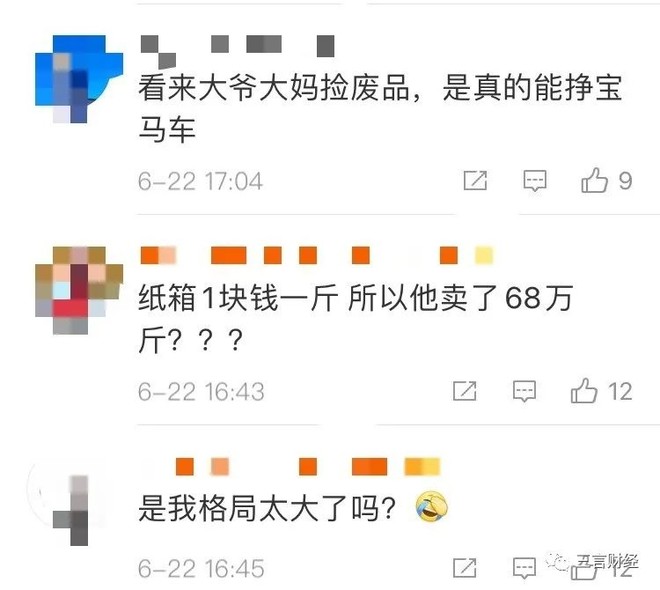 价值近70万元的废纸箱到底有多少? 2年间陆续通过售卖废纸箱获利近70万元,这件事被报道后,大量网友感到“震惊”: