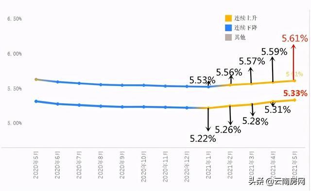 根据央行最新贷款市场报价利率(LPR),6月一年期LPR为3.85%,5年期以上LPR为4.65%,已经保持14个月没有变动。 然而,与之形成鲜明反差的是,LPR与房贷利率差值却在持续拉大中。根据融360数据研究院统计的《中国房贷市场报告》,全国房贷利率水平自2021年1月起一直处于上升水平。截止到5月18日,全国首套房贷款平均利率已经连涨5月,二套房也连涨4月,置业压力并未降低。 全国平均房贷利率走势(数据来源:融360数据研究院) 根据融360数据研究院统计,全国42个重点城市674家银行分支机构房贷利率的监测数据显示,2021年5月(数据监测期是2021年4月20日-2021年5月18日),全国首套房贷款平均利率为5.33%,二套房贷利率为5.61%,均环比上月增加2BP。 其中,首套房利率较今年1月时的5.22%,增加11BP(0.11%);二套房利率较今年1月的5.53%,增加8BP(0.08%)。通俗点说,如果以商业按揭100万,20年周期的等额本息来计算,在今年5月购房办理贷款要比1月多付出近1.48万的利息。 6月昆明首套房房贷利率平均水平约5.34%略高于全国平均水平 以首套房利率为例,云南房网了解发现,昆明市场9家主流银行现阶段平均利率水平为5.34%,略高于全国平均水平。中国银行、建设银行、工商银行、农业银行、民生银行和交通银行为5.3%,招商银行为5.6%,广发银行为5.4%,富滇银行为5.2%。 其中,招商银行房贷利率涨幅最大,环比上月上涨20BP,为现阶段贷款了利率最高的银行。与利率最低的富滇银行,利率差达到4%。对此,招商银行的客服经理表示,受贷款收紧的影响,现阶段各家银行可贷款额度都不高,昆明几家银行纷纷上涨房贷利率也多基于此。而对于这一情况什么时候能够改善,暂时也还不明朗。 从放款周期来看,现阶段大部分银行均无法给出准确的放款时间,需要结合银行额度和借贷个人情况综合考量。一般来说,首套房大部分2个月左右(1个月的也有,但很少),而二套房还会再延长。《中国房贷市场报告》提到,全国的首套房平均放款周期在40-60天之间,目前昆明也处在了略高平均值的水平。 昆明房产信息网6月份未结束已有近50起退房 然而,房贷审批却并没有因为利率上涨而放松。据云南房网不完全统计,6月还未结束,昆明房产信息网已经有近50份退房公示,其中银行拒贷的约有16起,约占总退房数的32%。拒贷原因基本围绕在首付款问题、流水不足、客户负债高等三方面原因,不可谓不严。 房贷利率上涨、贷款审批严格,除了增加购房者置业难度外,还会导致商品房去化周期变慢、库存的增加。 另一方面,昆明今年上半年土地供应放缓,仅完成总计划量的六分之一,还尚未启动大规模供地。可以预料,下半年大概率将爆发一场集中供地潮。随着这批土地的出让与开发,未来还将有不少新盘陆续面市。 让原本就“不富裕”的商品房库存,更加雪上加霜。 6 Z* D# i3 e" p5 s5 Y0 A- t