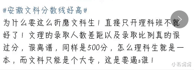 高考一直被人称为是改变命运的一场考试,而今天也注定是个不平静的一天,部分省市考生将在今天经历人生中最重要的一刻。 每年分数线和成绩出来后,都是有人欢喜有人忧,今年也不例外,不过与往年不同的是,今年忧的大部分都是文科生,尤其是安徽文科生。 2021年安徽省高考分数线出炉23日,安徽教育招生考试院官方公布今年高考录取分数线 文史类本科一批分数线为560分,本科二批线为519分,高职高专分数线为200分,而理工科本科一批线为488分,本科二批线为415分,高职高专分数线为200分。 相较于2020年,今年文科一本线比去年涨了19分,二本线比去年涨了20分,而今年理科一本线则是比去年降低27分,二本线比去年降低20分。