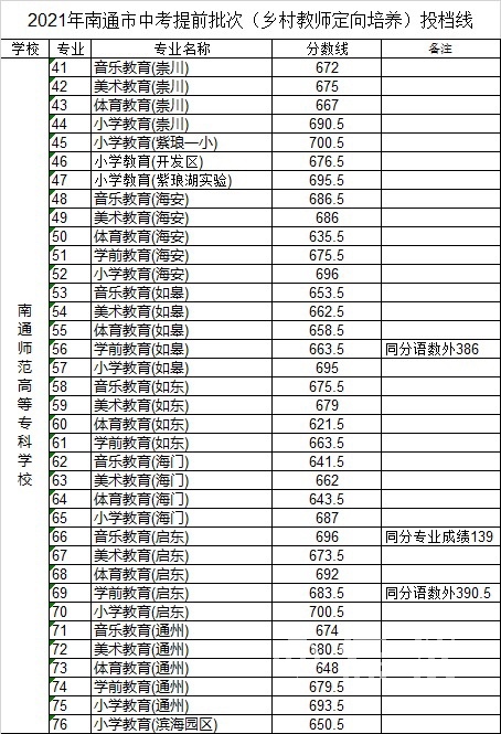 南通中考提前批次(乡村教师定向培养)投档线公布 |