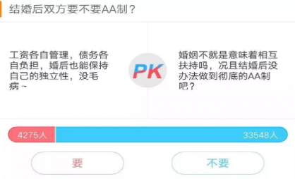 好的婚姻生活,当然是需要谈钱的。 但是,婚姻又不仅仅是有钱就能够维持的。 真正优质的婚姻,还需要有情有义、有恩有爱,以及可进可退的经营智慧。 ——凯叔 作者 | 奥黛卡 网上曾有一个新闻:天津有一对结婚57年的80多岁老夫妻,因为生活各过各的,一切都分得清清楚楚,连鸡蛋、菜刀都要AA制引发了广泛的热议。 前不久,他俩经过三次起诉后,终于离婚了。 其实,双方早就有离婚的意愿。但因房产分配的问题,基于互相的不信任,就先“加在房本上名字还是先离婚”的问题僵持不下。“万一离了婚,他自己卖了房不分给我,要怎么办?我就想在房本上加上我的名字!” 马奶奶希望离婚前可以在房本加上自己的名字,确保可以分得房产。而刘爷爷对此不满:“这房子本来就是我俩的,根本没必要通过诉讼确认。她只要同意离婚,我们协议都写好了,房卖了,一人50%,还多给她10万。加了她的名字,她反悔又不同意离婚了怎么办?” 刘爷爷想到离婚后加名要承担更多的过户费、手续费。于是,他便接受了“先加名再离婚”的方案,双方才达成协议终结了噩梦般的婚姻。 这对从头到尾都AA制的老夫妻,把婚姻是利益共同体的本质揭露得淋漓尽致。 谁的婚姻都离不开谈钱。但是,钱对于婚姻意味着什么?我们又该如何看待婚姻里的AA制? 婚姻,到底应不应该AA制? 谈钱伤感情,这是很多人思维框架里的信念。 所以,有些夫妻羞于、或不敢在婚姻里谈钱。 但是,婚姻不可避免地一定会涉及钱。谈到钱,而且谈钱也未必就一定伤感情。 那么,婚姻里到底要不要实施AA制呢? 对此,微博还发起了一个“婚后应该AA吗”的投票,结果显示:绝大多数网友都觉得不应该AA,同意AA的不到20%。 不赞成一方,都认为:要是连钱都要算清楚,那婚姻还有什么意义?况且,婚后很多东西,根本算不清。 赞成的一方,都认为:即便是婚姻该算的,还得算清楚。工资自己保管,消费共同承担,彼此独立一点不也很好吗? 其实,AA制并不是非黑即白的性质,只不过是个人婚姻模式的选择。 朋友蓝蓝,结婚十多年和老公一直保持AA制。双方拿到工资都是各自保管,涉及到家庭支出也都是按照5:5的比例分担。但是,夫妻俩却很少因为钱的事吵架。 蓝蓝说:“我和老公都觉得钱掌控在自己手里比较有安全感,AA制可以满足我们的这种心理,花钱的时候还能避免一些金钱方面的纠缠,而且彼此都认可这种模式,反而还更有利于相处……” 显然,在蓝蓝的婚姻里,他们互相认同AA制,并且在AA制中找到了适合彼此处理金钱的模式。 而朋友云云,却因为老公执意坚持的AA制,频繁陷入婚姻危机。 云云婚后还有颗少女心,希望不论生活还是金钱上都可以得到老公的照顾。 而且她赚得也没老公多,觉得老公在钱方面应该多付出。 然而老公却不这样认为,因为云云的原生家庭宽裕很多,自己只是从农村打拼出来的凤凰男,赚钱不容易。 于是,他也希望云云也能承担一半的家庭开支。因为金钱观的不同,夫妻俩也经常因为钱“你出多,我出少”的问题发生争执。 如此,AA制在婚姻里对彼此的情感都造成了一种隐形伤害。对于婚后到底该不该AA制,还需要自己做好利弊各方的权衡。 AA制婚姻模式的背后藏着怎样的秘密? 即便AA制并不是每对夫妻都认同和选择的婚姻模式,可它的出现也是有原因的。 当我们触碰到内心被忽略的隐秘角落,就更能理解AA制诞生具有的“意义”。 也因此,更能理解每个人在AA制中的需求。 其一,以计较金钱的方式,防御情感破裂。 有些夫妻即使生活在了一起,可能对彼此的信任度也有限。他们担心感情不够稳固,恐惧婚姻破裂失去对方。所以,他们才把金钱看得非常重。 感觉手里控制了钱,自己的生活才有可靠的保障。否则,就容易产生一种对自己失控的恐惧感。于是,他们不知不觉就在生活中表现出斤斤计较的态势。毕竟,不能从情感中得到安全感,就只有从金钱上面找到安全的支撑。 其二,为了讨好对方,压抑自己的需求。 也有时候,夫妻执行AA制就是为了讨好对方。 看过一则新闻,说的是结婚后男人嫌弃女人工资低,硬要执行AA制。刚开始,女人是反对的。但是,因为爱老公,想要维持和老公的和谐关系,所以还是答应了。 后来,女人的家人生病,本来需要老公支持一些钱。看到老公脸色不好看。于是就不敢向老公要,硬是自己扛了过去。 但是,她的心里一直不好受,在她看来:老公太计较,可能是因为不够爱自己。她不仅背负着金钱的负担,还承受着情感的折磨。 在我们的生活中,也有这样的伴侣。她们总是会选择压抑自己的情绪和需求。其中的原因,来自于讨好。正因为过于看重对方的感受和关系的稳定性,才一再妥协内心的需求。 其三,以此作为合作经营婚姻的一种手段。 前段时间,网红经济学家薛兆丰一语道破:婚姻的本质,就是一份商业合同。 婚姻本身就是夫妻双方的利益共同体。如果把婚姻比喻成夫妻合伙经营的公司。那么,AA制就是双方可达成协议的一种合作模式。 就像我的朋友蓝蓝,她和老公彼此更看重界限,把婚姻作为公司在经营。于是,AA制也成为了他们经营婚姻的一种手段。 不被金钱束缚让爱在婚姻里流动 李诞说:“婚姻是一个壳,不是我们要保护婚姻,婚姻要保护我们。要把所有最坏的事情都说好,将婚姻这个壳做得足够坚固。” 好的婚姻敢于谈钱。在恰当的谈钱方式中,反而更能找到相爱的默契。 把这件“最坏