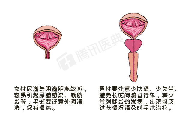 尿尿,这件不费吹灰之力的小事 却靠着一个“系统”支持完成 这就是,熟悉又陌生的 泌尿系统 它由“四大部门”组成 如图,自上至下:肾脏、输尿管、膀胱、尿道 7*24 小时的“营业”,每一位都不可或缺 1.肾脏——“排泄大长官” 主要工作职责:生成尿液 通过尿液清除体内血液循环产生的 代谢产物、废物、毒物 我位于你的背部肋弓下方 脊柱正中线两侧 2.5 厘米处 左右各一个、呈红褐色、紧贴腹后壁 一般长 10-12 厘米,宽 5-7 厘米,厚 3-5 厘米 大约相当于拳头的大小吧 各位小主 避免暴饮暴食、不抽烟、不喝酒、少吃垃圾食品 才不会让我超负荷工作哦,我很脆弱, 不适合承受太多压力 我生病了,会让小主常常感到腰部酸痛、胀痛 位置在脊椎两侧,活动腰部不能减轻症状 2.输尿管——尿液运输“高速路” 主要工作职责:把尿液送到膀胱 运输路段长约 22-30 厘米 上连肾脏、下连接膀胱 正常情况下我都是规律而有节奏的收缩与松弛 但当发生梗阻时,蠕动频率和幅度也会暂时增高 小主就会出现肾绞痛,恶心想吐 如果梗阻时间过长 肾脏分泌的尿液就会逐渐减少 各位小主要谨记 多喝水,可以让尿液里的结晶物质及时排出去,减少结石形成 我才不会出现“拥堵”哦! 3.膀胱——尿液储存仓库 主要工作职责:存储尿液 我的形状、大小、位置和壁的厚度 会随尿量的改变而改变 健康成年人的膀胱中存储了 300 毫升~500 毫升尿液时 就会有想上厕所的冲动 如果不能及时排出,尿液会不断增加 当憋到 800 毫升的警戒值的时候 膀胱内壁的“逼尿肌”就会开始让你产生痛感 再不尿,尿道括约肌就要开闸泄洪了! 请注意,当你出现: 尿频、尿急、尿痛、排尿费力, 尿线细,尿量少、尿不尽、尿血、尿失禁 请立即去医院 4.尿道——仓库守门员 主要工作职责:掌管尿的放行工作 我虽然处于最底端,但却掌管着两道关口 向内起始于膀胱出口,向外延伸至外口 男女有别哦! 男性尿道像盘山道一样长且曲折 分成了四段: 膀胱颈、前列腺部、膜部、阴茎底部 平时要注意少饮酒、少久坐、 不要长时间骑行,减少前列腺炎的病发 女性尿道较短、约 3-5 厘米,距离阴道较近 容易尿道感染、膀胱炎 平时要注意用清水清洗,保持外阴清洁哦 尿液,身体健康的晴雨表 如何判断是不是健康的: 尿量 正常成人 24 小时总量为 1000 毫升~2000 毫升 每日量>2500 毫升为多尿,应针对原发病进行治疗 每日量 少尿和无尿等症状是威胁生命的严重症状! 要及时去看医生! 颜色 尿液颜色,能一定程度反映机体的健康状态 如果尿液呈现“五颜六色” 可能是你的身体在“求救”… 看更多尿液颜色和可能的问题 对不住大家了,看完此篇 可能啥都不想喝了