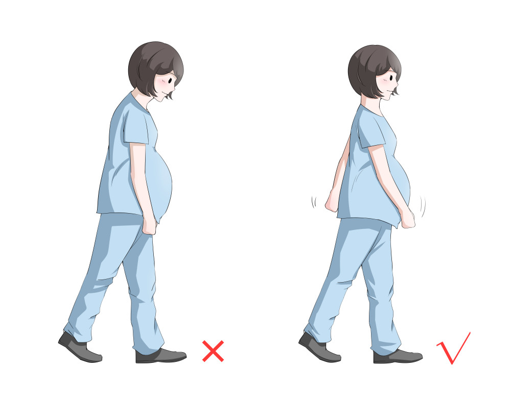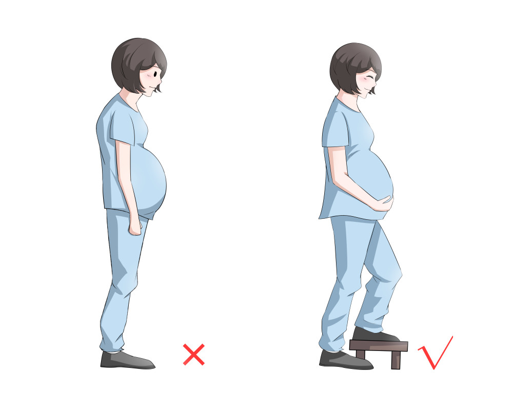 很多准妈妈怀孕以后,有腰酸背痛的现象,晚上怎么躺都不舒服,白天工作或做家务时更是累得慌,尤其是到了孕晚期就更严重。 这种情况其实和孕期的生理变化有关,大家平时注意正确的站、立、行、躺姿势,并利用一些技巧,就可以缓解腰酸背痛,这篇文章会分享详细的方法并附上示意图,一学就会。 孕期为什么会腰酸背痛? 孕期出现腰酸背痛很常见,一般是以下这些原因引起的: 激素水平变化 怀孕后,身体内的激素会发生变化,使骨盆区的韧带变松弛,为生孩子做准备。但是韧带的松弛会使得脊柱和腰椎不稳定,会导致腰酸背痛。 体型变化 随着孕肚越来越大,身体重心发生变化,会无意识地改变身体姿势来保持平衡,这会对背部肌肉产生牵拉,引发疼痛。 怎么缓解腰酸背痛? 对于孕期腰酸背痛的问题,大家不妨试试以下几招来缓解酸痛感。 注意姿势 正确的坐、立、行、躺姿势可以帮你减轻腰酸背痛的症状。 怎么坐? 注意身体尽量挺直。 可以在椅子的靠背上放个软靠垫,这样坐着的时候,背部可以放松一些。 双脚下面可以放个小矮凳。 怎么站? 注意抬头、挺胸、站直、不要撅屁股。 如果需要长时间站着,那就准备一个小凳,把两只脚轮流放在上面休息。 怎么走? 尽量让肩膀放松。 不要弯腰驼背。 穿舒服的低跟鞋。 怎么躺? 不要平躺,推荐左侧卧,可以减轻腰部负担。 背后可以放个孕妇枕,托住腰腹部,这样也能帮助缓解腰痛。 避免弯腰 怀孕后,随着肚子变大,身体重心会前移。弯腰的姿势会进一步导致重心前移,加重腰酸背痛,所以要尽量避免。 如果要从地上捡东西,不要弯腰,而是尽量蹲下来捡。 做家务的时候也一样,尽量减少弯腰动作,以减轻腰背部肌肉负担。 穿鞋子的时候,可以找一把小椅子,把脚放在上面穿鞋,也可以坐着穿鞋,避免直腿弯腰。 不要弯腰搬太重的东西,费力的家务活就由家人帮忙吧。 做放松按摩 可以让准爸爸帮忙,帮你做一下腰背放松按摩,减轻不舒服的感觉。 适量运动 大家可以做一些轻缓的运动,来缓解肌肉紧张。运动要注意量力而行,以不感到疲劳为宜。下面这套猫式运动就适合准妈妈们做: 身体呈ㄇ字形跪姿,两脚打开与肩同宽。 吸气,腰部下压,头慢慢抬起,做 3~5 次呼吸。 吐气,将背部缓缓拱起,感受背的伸展,做 3~5 次呼吸。 把以上步骤重复练习 5~8 次。 孕期适当运动不仅有利于缓解很多不适症状,对分娩也是有好处的。
