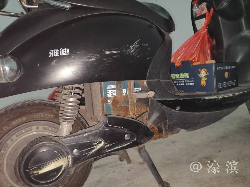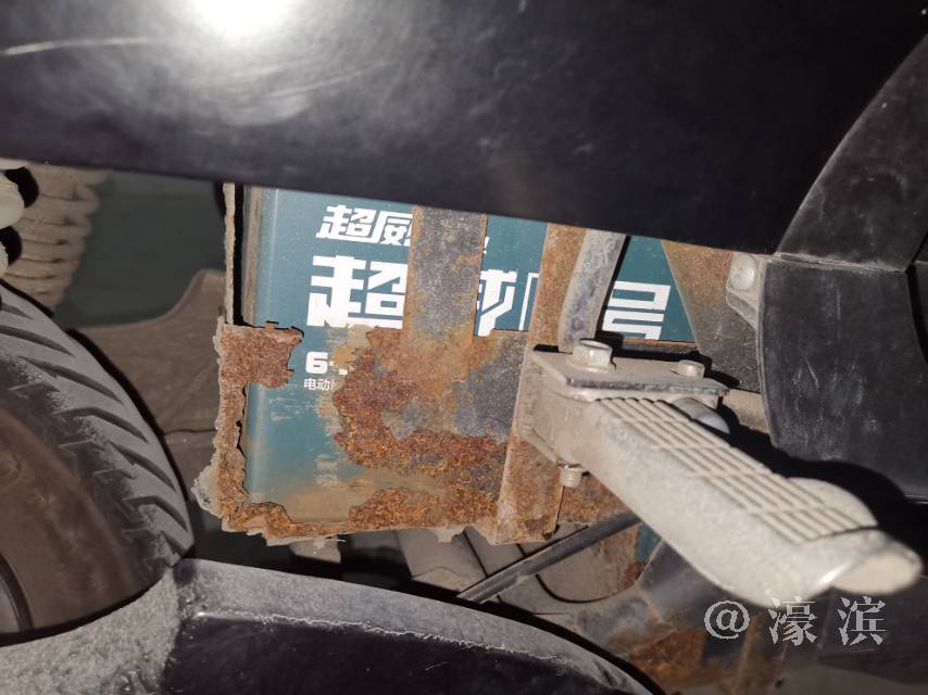 电动车电瓶固定架已经锈烂了,不知道厂家能不能免费维修 |