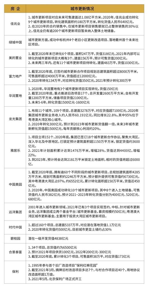 城市更新走到了新的十字路口。 8月10日,住房和城乡建设部就《关于在实施城市更新行动中防止大拆大建问题的通知(征求意见稿)》(以下简称“征求意见稿”)公开征求意见。意见稿释放了收紧城市更新、防止大拆大建的政策信号,其中防止大拆大建、防止房地产化、发展住房租赁市场、坚持“留改拆”并举、尽量保持城市记忆、补短板、留白增绿、重运营等充分体现了城市更新的新要求。 这对于那些持续加码城市更新,并以此作为扩充土储的房企而言,无异于当头棒喝。 靠城市更新扩土储的企业受累 城市更新当前发展快速,其根本原因在于“算账”算得过来,尤其是房企在拿地成本上颇具优势。 房企加码城市更新的两个原因在于: 1、通过城市更新获取的土地楼板价往往低于周边的招拍挂土地; 2、一二线城市的土地日趋紧缺,而一些老旧建筑需要拆除重建,城市更新便成为房企拿地的有效渠道。 公开数据显示,目前中国百强上市房企中,参与城市更新的比例已达 80%,并且已有51%的房企运营规模超百万平方米。据睿和智库不完全统计,佳兆业、恒大、富力、融创、保利和时代中国这六家房企城市更新潜在总面积均超过5000万平方米,美的、时代中国、中国奥园等房企也在2020年转化了超百万平方米的建筑面积。 部分房企城市更新项目储备及其预计转化周期 来源:睿和智库制表 而此次征求意见稿对城市更新明确了“坚持留改拆并举、以保留利用提升为主”的原则,增强了房地产行业和部分以城市更新为主要拿地来源的房企的不确定性。 具体提出严格控制大规模增建,原则上更新单元(片区)或项目内拆建比不宜大于2; 严格控制大规模搬迁,更新单元(片区)或项目居民就地、就近安置率不宜低于50%; 同时,对拆除的规模和节奏也提出了要求:“不大规模、短时间拆迁城中村等城市连片旧区,导致住房租赁市场供需失衡,加剧新市民、低收入困难群众租房困难。” 这些规定,在一定程度上有一刀切的意思,对于想布局城市更新,拿地绕开监管与土拍的房企影响较大。比如TOP50以下的房企大多以单一住宅开发为主,缺少城市服务运营经验。 在层层政策压力之下,短时间或很难开发新的项目。而具有城市更新基因的房企,比如卓越集团、大华集团等,下半年或将继续拓展全国业务。 2020年以来,房企合作城市更新统计表 新政实施3个关键点 城市更新是未来发展的重要课题,它不同于“拿地、开发、出售”的常规模式,而是要通过空间重构与焕新,不断持续进而更新整个城市。新政实施过程中,要理清3个关键点。 1、城市更新要精细化运营,测算好收益 此次征求意见稿提出,租赁住房要限制租金涨幅,要求留白增绿等,对精细测算成本和收益提出了更高要求。 “十四五规划和2035年远景目标纲要”就已明确要求新型城镇化建设应“拓展城市建设资金来源渠道,建立期限匹配、渠道多元、财务可持续的融资机制”。 房企拿地价格如何?政府如何筹集资金,项目开发如何获利?这三个方面必须要考虑到。 而征求意见稿给出的答案是“政府注重协调各类存量资源,加大财政支持力度,吸引社会专业企业参与运营,以长期运营收入平衡改造投入,鼓励现有资源所有者、居民出资参与微改造”。 照此逻辑,产生的问题是:政府的资源除了土地、房产、产业外,财政支持力度有多大?长期运营收益有多少?现有资源所有者出资能有多少? 2、影响项目收益的因素 现实情况是,城市更新周期较长,原业主与政府协商、房企土地获取等各个环节都存在不确定性。在实操过程中,政府以较低地价吸引房企拿地,双方合作实现城市价值与功能提升。 而这其中,决定土地成本的关键在于原业主与地方政府协商。此外,在大型建设项目开发过程中,固定资产投资必不可少,投资与回报是否可以达到代际平衡?而在公益性项目投资中,项目价值外溢回收主要还是取决于土地、产业、房产等固定资产。 此次征求意见稿对资产配置、资金补贴力度并没有给出明确规定,但却做了限制。 而不少地方政府在存在隐性债务的现实面前,出于土地出让、城市价值提升的考虑,会选择综合实力较强的房企合作。 房企继续布局城市更新业务的过程中,也开始试水产业拿地。除了拿地成本占优势外,要想达到更高的利润率,必然需要更强的资管能力。谈判、拆迁、前融、开发只是项目初始阶段,核心竞争力是商业运营和产业运营能力,是存量时代下的全新资管能力。而房企实际运营还需要政府支持、产业平台、精细管理、资金实力等。 3、城市更新最终目的在于解决职住平衡,实现产融结合 此次新政强调了城市更新中的民生保障、住房政策落实,凸显了城市更新的公益性。尴尬的一点是,城市更新既要有公益性,遏制地产化,加大租赁住房等保障型住房比例,同时其又是城市内循环发展的抓手。也就是说,城市更新行动要与政府调控房价、解决职住平衡的目标衔接。 未来,除了房企目前存量经营项目外,产业地产、商业地产等建设、运营,才是城市有机更新的重点。毋庸置疑的是,对于房地产行业而言,支柱型产业、高杠杆周转的时代一去不复返了。 “渐进式更新”和“微更新”成为城市更新关键点。而房企布局城市更新时合作趋势明显,主要表现为以寻找补充自身短板的合作方、引入资金实力强的投资方、有城市更新经验的房企