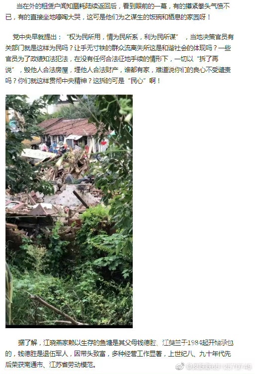 江苏南通:江晓燕家承包40年的鱼塘设施被强拆 |