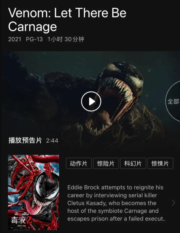 正当抗美援朝大片《长津湖》 刷爆内地影市票房纪录之际, 北美影市那边也传来了好消息 索尼漫威大片《毒液2》 北美开画大爆9010万美元, 创疫情时代新纪录! 这一爆炸级的首周末成绩, 远超之前的业界最乐观预期。 超越《黑寡妇》8036万美元的疫情后最佳开画票房 在十月影史上,也仅次于 DC超英神作《小丑》9620万美元 作为疫情后最高的北美开画票房, 《毒液2》击败《黑寡妇》《尚气》《速9》等一堆大片, 再次证明了 【院线必须早于流媒体上映】策略的正确性 毫无疑问, 目前最大的悬念就是 《毒液2》能否引进中国内地。 根据业内的消息, 此片的主线剧情堪称是 汤老湿与毒液相爱相杀的虐狗日常, 是一部腐女最爱的反英雄超英大作,在LGBT元素上过审有点困难 不过, 这个系列从一开始 就特意为中国市场做成PG13 否则这血盆大口的东西分分钟R级 索尼中国的营销也一直在进行, 《毒液2》还是很有希望 在10月底/11月上旬登陆内地院线 不得不说, 索尼旗下的两部漫威超英电影 《毒液2》和《蜘蛛侠英雄无归》, 是今年唯二最有希望冲击疫情后首部10亿美元+的超级大片 三大原因: 1)院线上映比超清资源曝光早2个月 2)前作内地票房全部都破2亿美元+ 3)彩蛋联动噱头十足,坊间盛传: 《毒液2》片尾惊现荷兰弟 《蜘蛛侠3》三代蜘蛛侠同框 一言以蔽之, 只要《毒液2》《蜘蛛侠英雄无归》 内地在超清资源曝光前上映的话, 10亿元+稳的 ,20亿元+也极有可能! 要知道, 今年漫威的中国票房是Zero/零/0 作为好莱坞超级英雄大片影迷, 口袋君简直快要憋坏了! - t) L9 J3 l2 f) Z& U, E! B