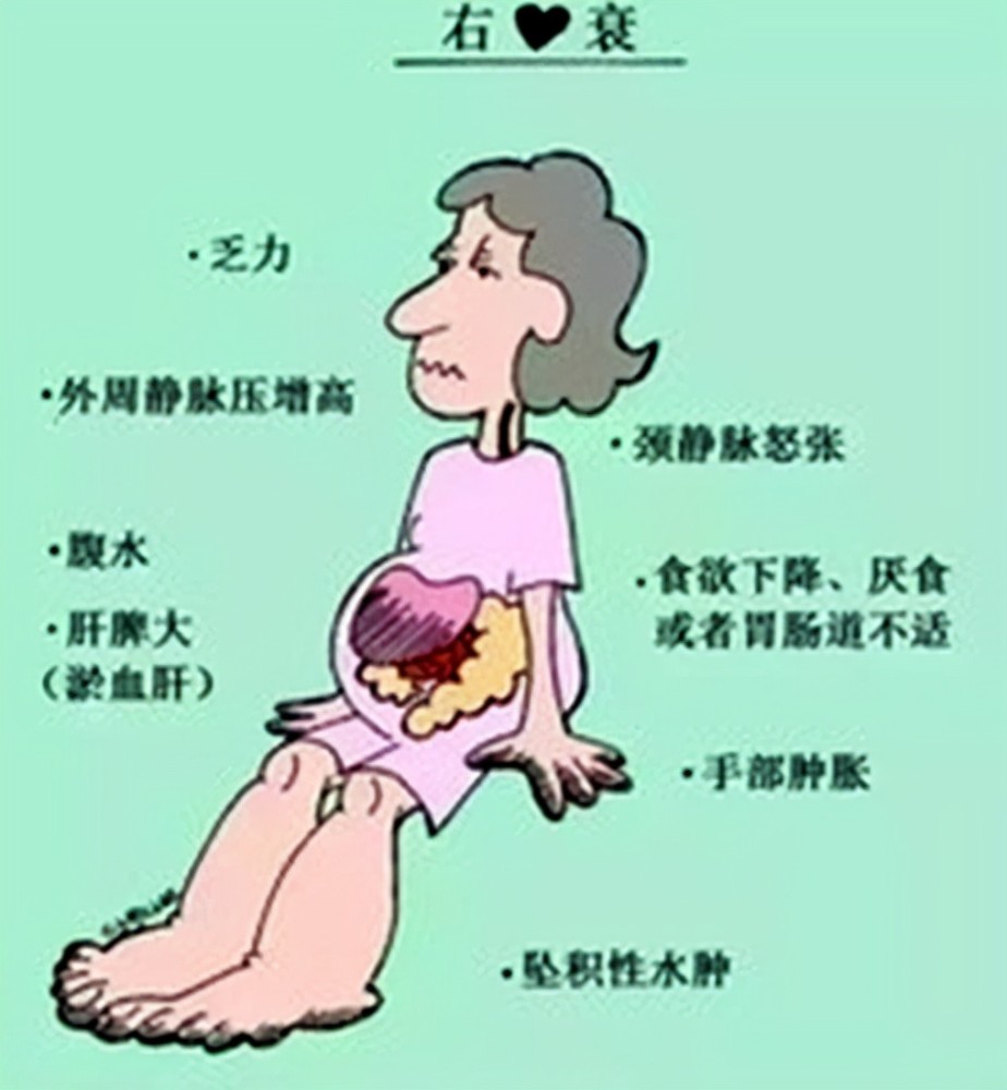 我们说高血压损害心脏后心功能会衰竭。其实,各种心脏病到了后期都会经历心功能衰竭的阶段,算是殊途同归吧。 人的心脏主要有两大方面的功能。 最主要的,泵血功能。 心脏就像一个泵,接受全身回流的血液,把心脏里的血液泵出去,推动血液循环。泵血功能是明面儿上能看到的,也是人们传统观念都认识的。 泵血功能不好,对需要供血的地方,就会出缺血的表现;对于血液要回流的地方,就会出淤血的表现。所以,心功能要是不好,就是出现相应部位的缺血或淤血表现。 很重要的,内分泌功能。 心脏除了泵血,还会分泌激素,像心房利钠肽、脑钠肽等等;肾素-血管紧张素-醛固酮系统,在心肌细胞上也有,对心肌和血液循环起作用。这些内分泌激素,是后来发现的,在心衰过程中推波助澜,所以越来越受重视了。 心功能到了衰竭,就不能负担日常的血液循环工作、维持不了人体的需要了。 心脏分左右两部分,所以心功能不好时也会分别体现。要是左右心的功能都衰竭了,那就是全心衰,左右心衰竭的表现都有。 左心衰。 左心是给全身供血的。左心衰竭,全身的供血减少,血压会降低,心跳会加快来弥补。所以,高血压患者要是有了心衰,血压就不高了;心梗病人,有时还会低血压,就是因为心功能差了。心衰时心脏排血少了,全身脏器功能都因为缺血而减低。肌肉缺血,就会没劲儿、乏力;内脏缺血,功能就会减弱,消化吸收、代谢排泄功能都会受影响。 左心是负责接收从肺里回流的血液的。左心衰竭,肺里就会淤血,严重时会水肿。淤血水肿的肺脏“吸入氧气、呼出二氧化碳”受阻,会缺氧,也容易感染,人就会感到气不够用了。 所以,左心衰的时候,人会感到乏力,胸闷气短。轻的时候是活动时出现,休息后就会缓解,医学上称作“劳力性呼吸困难”;以后程度加重,休息不活动时也会胸闷憋气;甚至不能平卧,需要垫高枕头——高枕卧位、或者坐着——端坐呼吸;有时睡到半夜还会突然憋醒,需要坐起来喘一阵儿才能好转,医学上叫做“阵发性夜间呼吸困难”,再严重还会咯带血的痰,粉红色泡沫痰。这是因为心功能太差,躺卧时回流到心脏的血液增多一点儿都负担不了。 总是肺淤血,肺动脉里的压力就会升高,就影响右心泵血了,右心也会衰竭。 右心衰。 右心是接收全身静脉回流心脏的血液的。右心衰竭,全身静脉回流受阻,就会出现淤血、水肿,全身的淤血水肿。 下肢下垂,所以腿肿出现比较早;如果病人总是躺着,那身体下垂的部位都可以水肿,甚至阴囊水肿。 内脏也会淤血肿胀。肝脏淤血肿大、肾脏淤血、胃肠淤血;严重时水分还会渗出来,就会有胸水、腹水、心包积液;静脉回流不好压力高了还会出现曲张,比如平时看不见的颈静脉出现怒张。淤血同样影响脏器的功能,胃肠淤血食欲减退、恶心、腹胀,肝脏淤血肝区胀痛,肾脏缺血、淤血,就影响排尿、尿少了。 右心是往肺里泵血的。右心衰的时候,肺里的血液是减少的。肺血少,也影响左心供血供氧。但如果原来有左心衰,右心一衰,肺血减少,肺淤血反而会减轻。所以有时候症状减轻并不一定是什么好事。 身体里各个器官的功能都是互相影响的。胃肠不好,消化吸收不好;肝脏不好,合成蛋白、代谢毒物受阻;肾脏不好,排出水盐、代谢产物减少,就更加重水肿、营养不良、身体里毒素蓄积,还会出现其他问题,病人就全身衰竭了。 心脏的神经内分泌功能紊乱,推波助澜 心衰时心腔里压力增大,心脏分泌利钠肽、脑钠肽(BNP)激素就增多了。原本是为了利钠排水,可现在就利用BNP升高的数值来判断心功能和水钠潴留情况;不仅如此,还制作成药物“新活素”治疗心衰。 心衰时,肾素-血管紧张素-醛固酮系统也是活跃的,分泌增多。本来是为了维持血压、促进心肌修复,可是,血压高对心功能不利,修复心肌的质量也太差,还会增加身体里的水分和盐分,更加重心脏负担。 心衰的时候,因为全身供血减少,身体里就会想办法弥补,其中一条就是交感神经兴奋,促使心跳加快。可这样的结果无疑是“鞭打病马”,欲速则不达。而且交感神经分泌的激素对心脏有直接的毒性。 上面说到的症状是病人和家人可以感觉到、看到的。医生检查也会有发现,就不在这里赘述了。 2 ~! f5 ~0 I: }; h& J