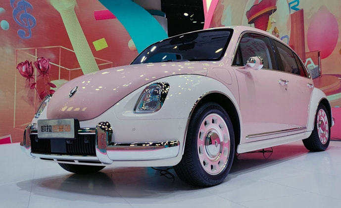 最近一段时间,长城汽车在多元化战略上大步迈进,接连推出多个子品牌,想要赢得不同消费群体青睐。坦克300横空出世成为现象级车型,不仅成功收获大量直男认可,还提升国产车型在越野车领域存在感。而欧拉汽车则是专攻城市女性小资阶层,在开启“猫系”路线之后大获成功,不管是人气还是销量都实现节节攀升,成为一股不容忽视的力量。为了进一步丰富家族产品线,芭蕾猫即将在明年加入战局。现在部分新车已经到店,就让我们通过一组实拍图去感受一下其魅力如何。 其实关于芭蕾猫最大的争议,就是在于其外观方面。很多人都批判其几乎原版复刻大众经典车型甲壳虫,认为长城汽车犯下抄袭这个业内大忌。但深究起来,这个责任不能全部归于长城汽车身上。首先,大众甲壳虫就没有在国内注册外形专利。既然没有专利权,那就不能禁止其他车企采用此种设计路线,这也是常识。其次,长城汽车最近都在走复古路线,不管是大狗还是坦克300,都充满着浓郁古典观感。芭蕾猫作为一款小车,以过去老爷车为模板打造无可厚非。所以强行为芭蕾猫贴上COPY大众甲壳虫的标签,实属无稽之谈。 回到芭蕾猫本身,虽然该车主体架构偏向老爷车,但其却在诸多方面做出针对性调整。首先其用色就较为大胆前卫,此次实拍车型以粉色为主色调,看起来精致时尚,粉嫩外表可以吸引诸多小姐姐的注意力。前后轮眉处都以白色搭配,观赏性更为出众,充满小资情调。其前脸部分圆弧式引擎盖圆润可爱,展现时尚美感。大灯组造型别致,仿佛回到老电影桥段,在开启之后韵味独特。下包围则为矩形布局,内部加入熏黑式填充,运动气息得到提升。 芭蕾猫车身侧面线条优雅流畅,利用圆溜背造型和高顶结构提升头部空间,观察视野更为开阔。其在轮眉处以圆角矩形为基础,离地间距相当可观。轮毂尺寸较为娇小,与其整体气质相符。车窗、外后视镜周边都以镀铬修饰点缀,凸显出年代之美。该车尾灯组与前灯组几无二致,两侧互为映衬,辨识度毋庸置疑。向外突出的小尾翼很是抢眼,似乎显露出一丝动感风格。车尾牌照区域增设几条粗壮镀铬饰条,仿佛在展示工业质感。整体来看,芭蕾猫既遵循古典美学,又融入潮流元素,颜值方面和大众甲壳虫相比胜出许多。 走进车内,芭蕾猫还是主打粉色基调,进一步虏获女性消费者芳心。为了提升观赏性,其还在中控台、门把手等多个区域增加牡丹花刺绣,档次上更为突出。当然也有人认为此类修饰过于突兀,和其整体风格很是不搭,“不中不洋”让人难以接受。其方向盘重回复古路线,简单设计之下却能实现精准转向,避免剐蹭等情况发生。不过对于很多新车主来说,还是需要时间去适应一下。其换挡区域以仿水晶材质打造,与车标遥相呼应。下方储物空间较为宽裕,放置一些包包都不成问题。 芭蕾猫对于科技配置毫不马虎,其内置一体式连屏,尺寸在同级车型中占据优势。长城最新车机系统得以应用,能够让你在行车过程中感受到科技魅力,享受诸多影音娱乐服务。其语音识别控制系统能对多种指令进行分辨,进而准确执行。车联网系统估计也不会缺席,仪表盘能支持不同模式切换。预计新车还会对驾驶辅助系统重点打造,缓解行车压力,减少危险发生概率。 作为纯电动车型,续航里程将会是芭蕾猫征战市场关键所在。其将以电动机为基础,区分400公里和500公里两种版本,可以满足不同消费者用车需求。当然其在正式上市之时或许会做出调整,这些数据需要等待最终官方确认。可能对于很多人而言,芭蕾猫还是和甲壳虫高度神似,但这不正好可以弥补该车2019年停产后的遗憾?现在国内车市竞争日益激烈,芭蕾猫在上市之后将迎战诸多强力对手。目前来看,该车在外形、内饰和动力上都表现不错,但没有太过抢眼的优势。对其销量最好还是持谨慎态度,能够达到月销3500辆就算不错了。