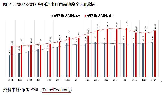 地缘贸易多元化指数:中国出口商品组合越发具有广泛流通性